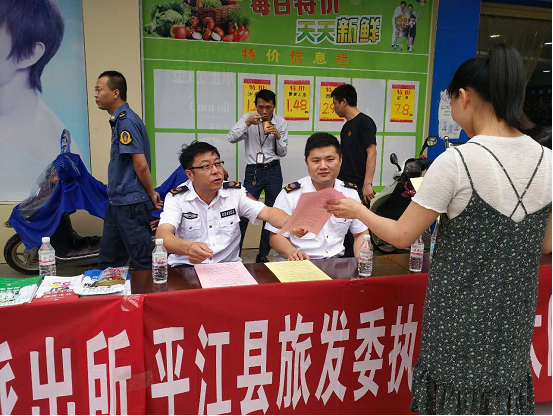 为贯彻依法治国理念,落实普法宣传教育,营造学法知法,守法用法的氛围,6月26日上午, “6.26法制宣传日”普法活动在福寿山中心集镇拉开了2017年法制宣传月系列活动序幕。平江县旅游发展委员会应邀参加。