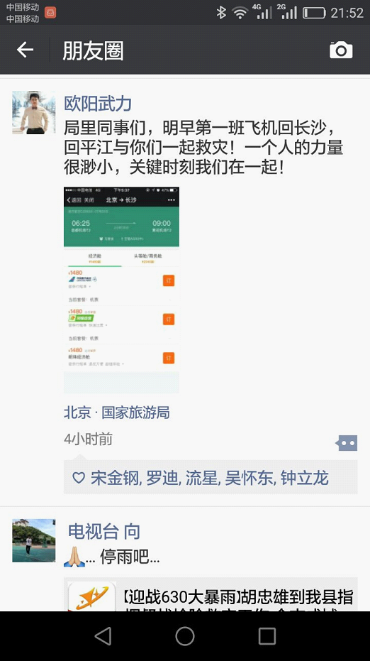 洪水无情,旅游有爱。关键时刻平江旅游人以自己的行动诠释着人间大爱。就如在北京出差及时改签机票赶回家乡救灾的旅发委干部欧阳武力说的那样:一个人的力量很渺小,但关键时刻我们在一起。相信在旅游人的团结一心下,在全县人民的共同努力下,平江一定能够渡过难关,战胜洪涝,再建美好家园。