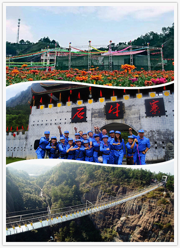 国庆期间,平江石牛寨玻璃桥景区打造红色好莱坞和浪漫花海+高空玻璃桥秀体验活动。