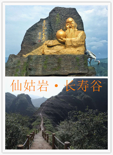 仙姑岩·长寿谷景区是全国闻名的红军营旧址,海拔280多米,属丹霞地貌,沟壑纵横,岩洞遍布,悬崖峭壁,山势险峻。