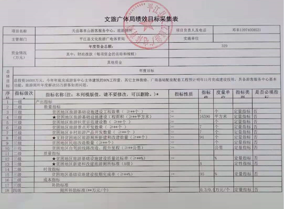 文旅广体局绩效目标采集表