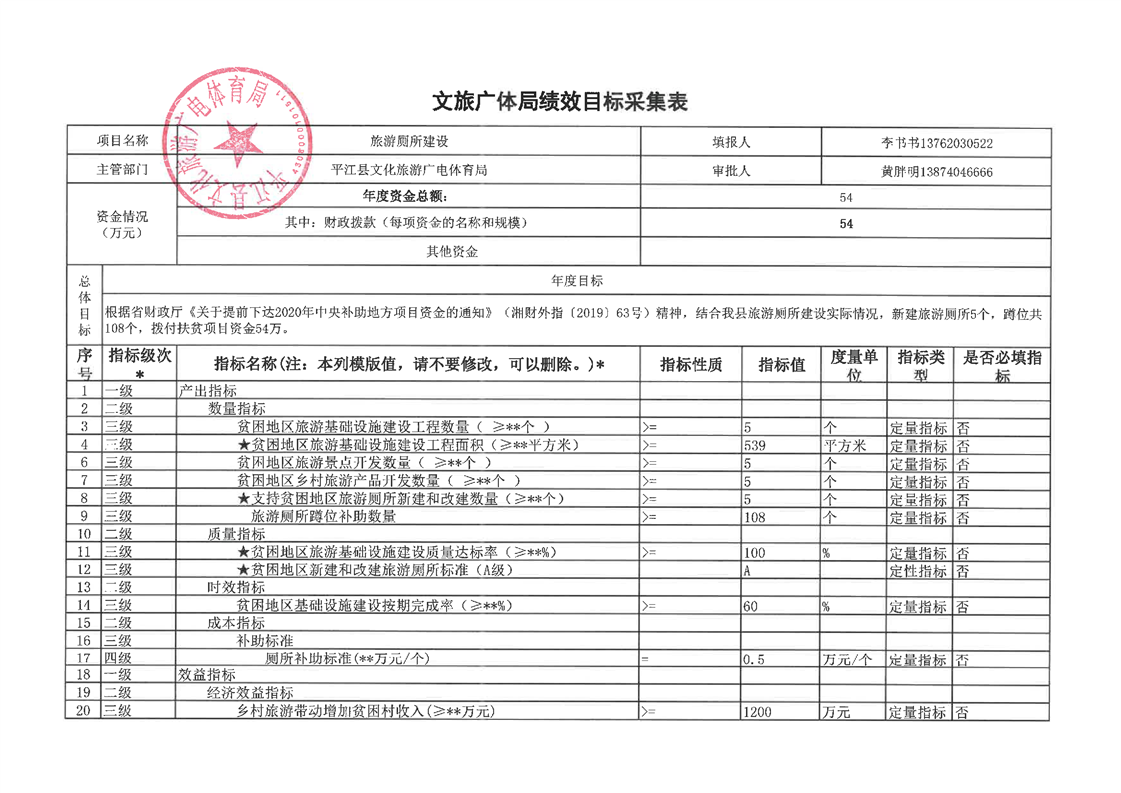 2020年统筹整合涉农资金项目库预算绩效采集表