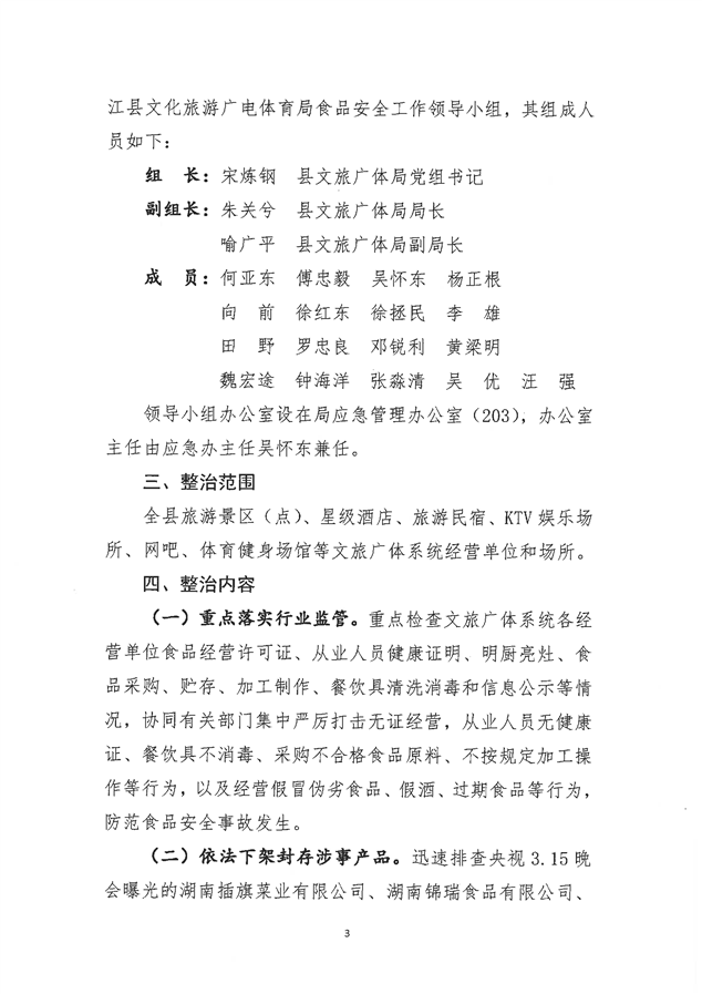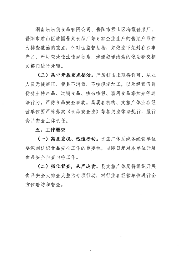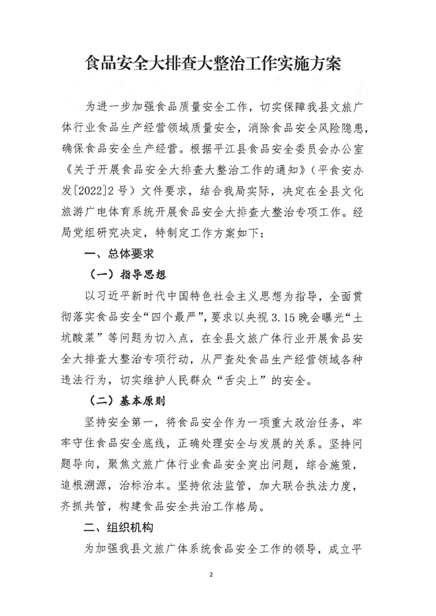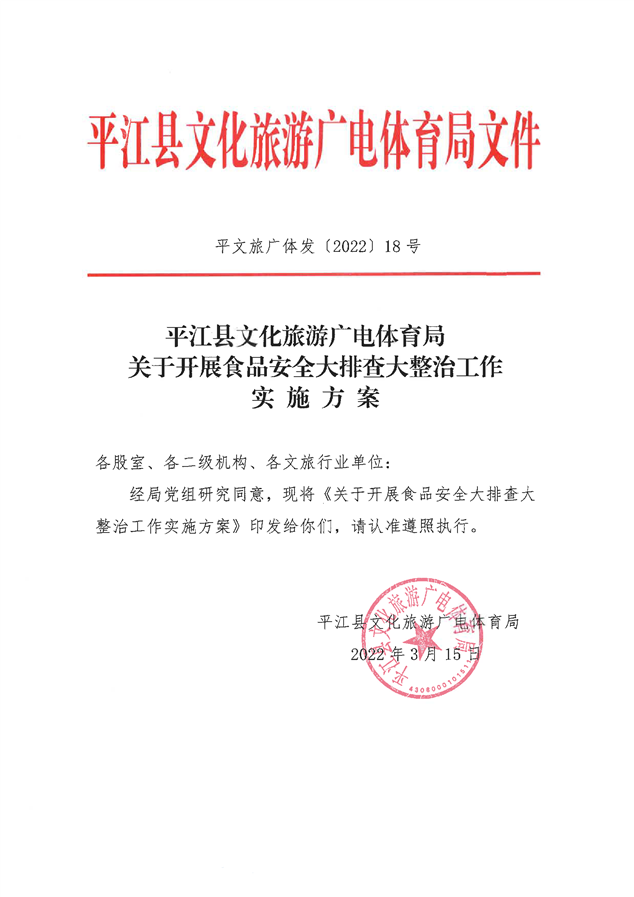 平江县文化旅游广电体育局关于开展食品安全大排查大整治工作实施方案
