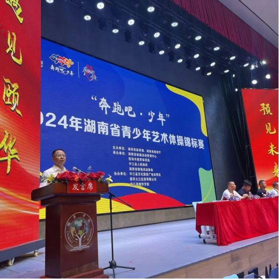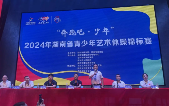 湖南省体育局青少年体育处三级调研员李瑞龙、平江县人民政府党组成员副县长李三军、湖南省教育厅体卫艺处一级主任科员张志敏、省体操运动管理中心训练科科长张硕、湖南省体操学校学校长郑涛、平江颐华学校初中部校长王全胜出席本次活动。开幕式由平江县文旅广体局党组书记王掌义主持。