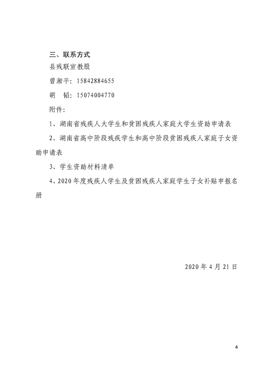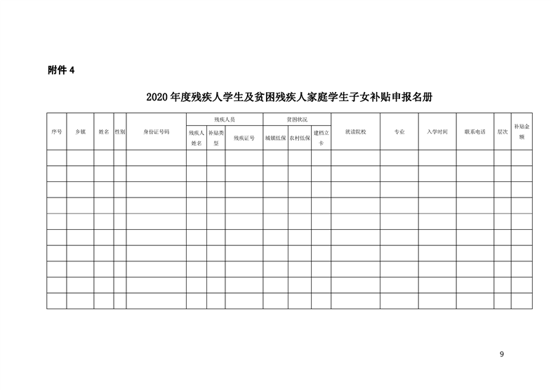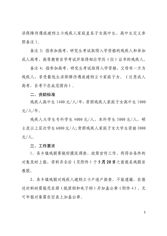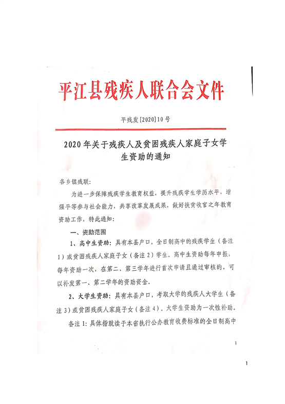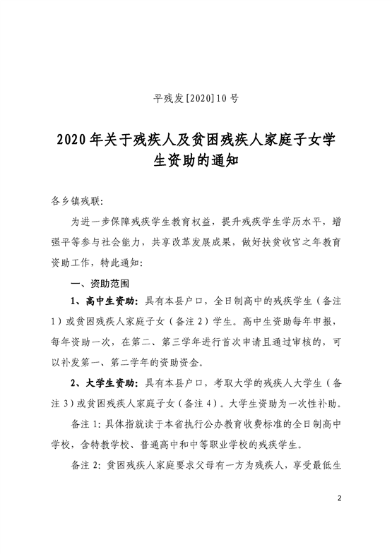 2020年关于残疾人及贫困残疾人家庭子女学生资助的通知