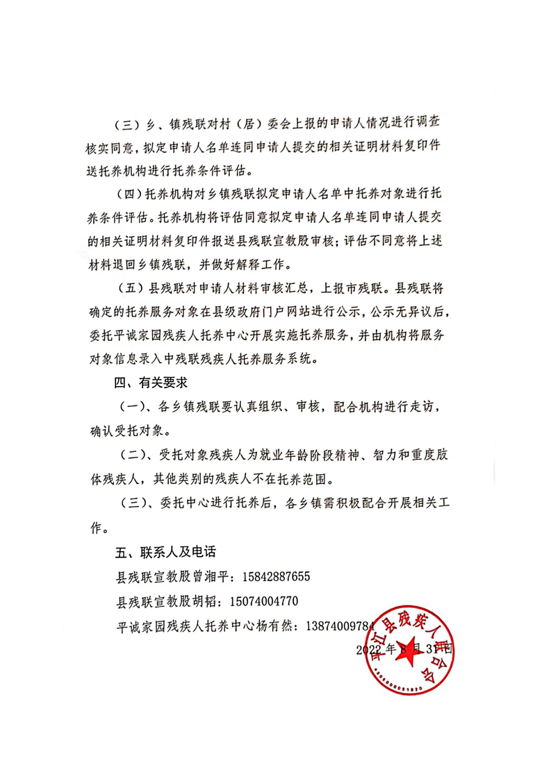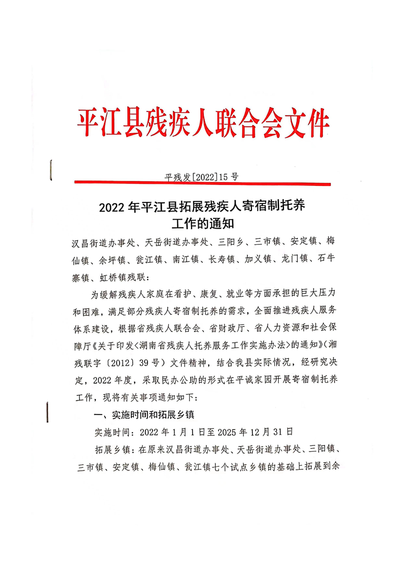 2022年在我县拓展残疾人寄宿制托养工作的通知