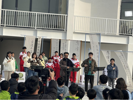 湖南卫视主持人汪涵、张含韵和特校师生合影