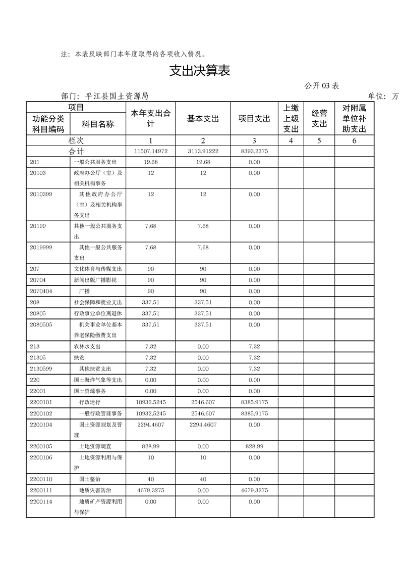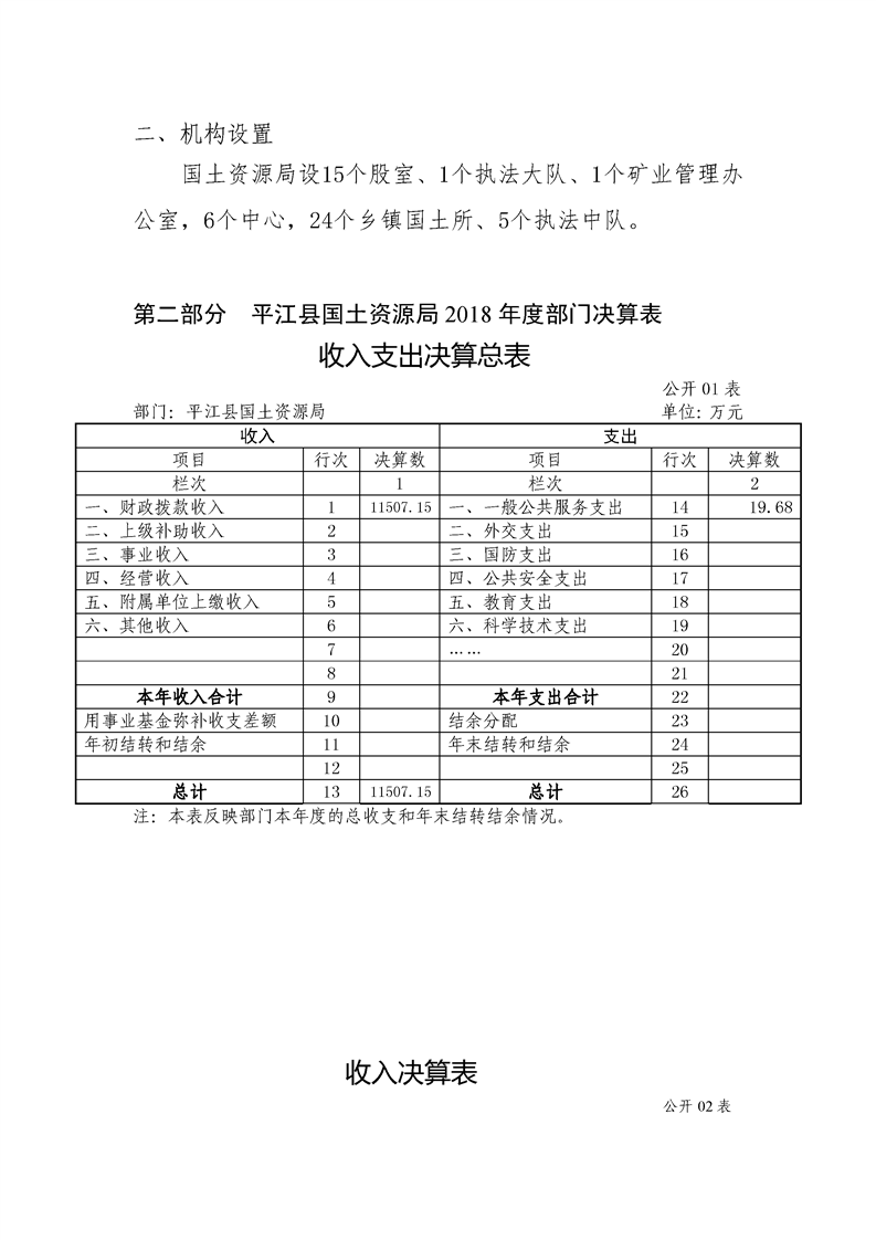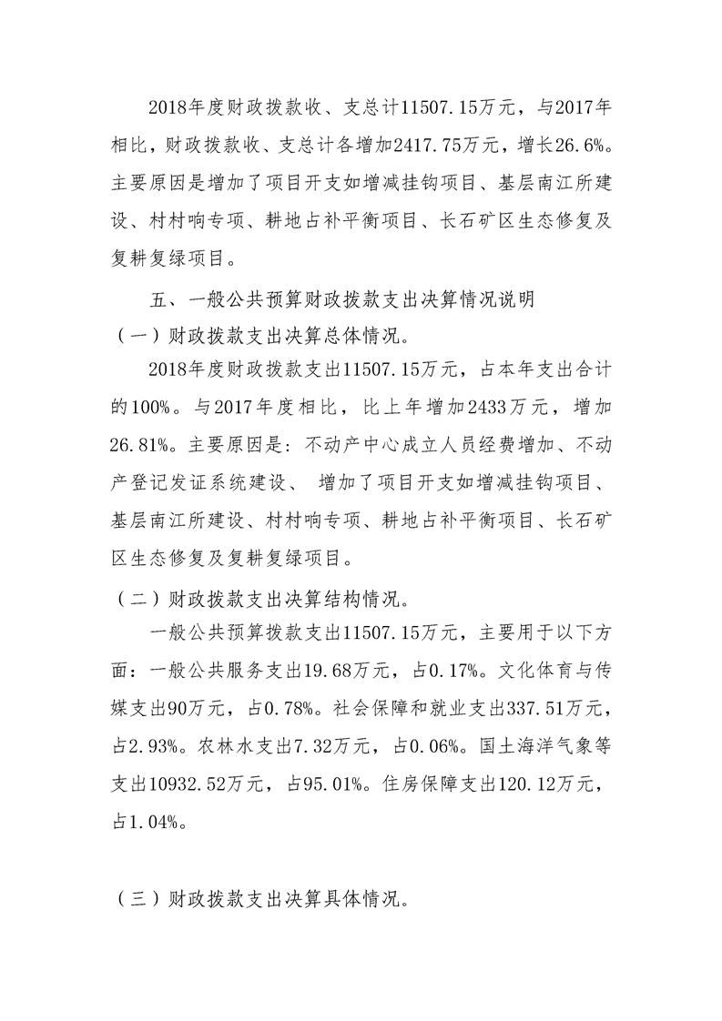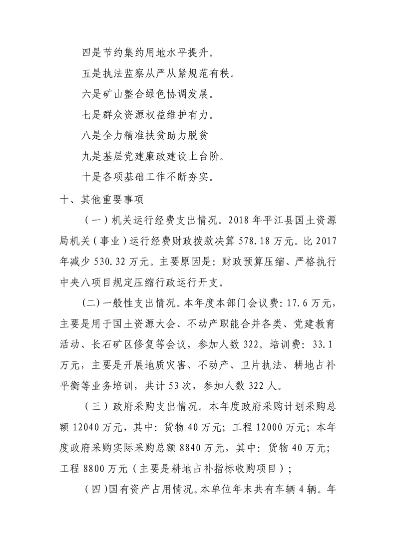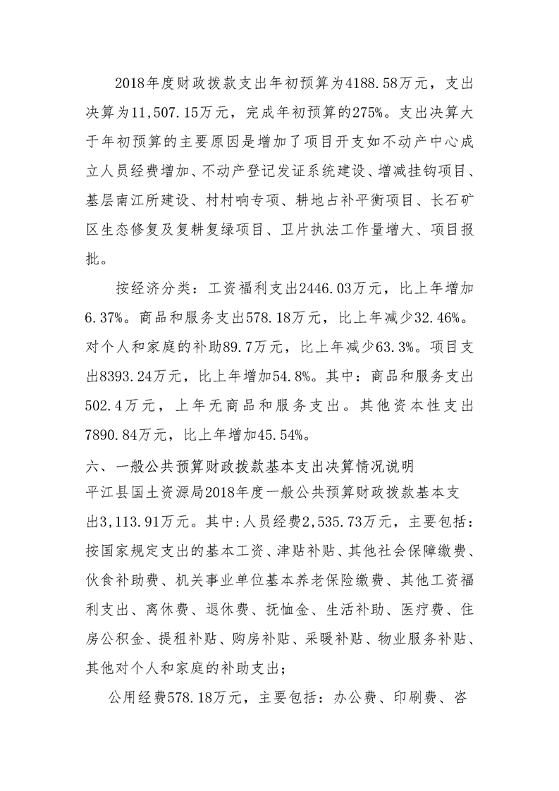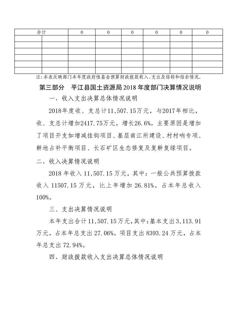 平江县国土资源局2018年决算编报说明