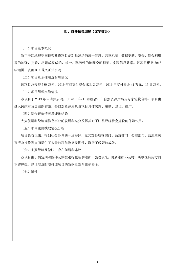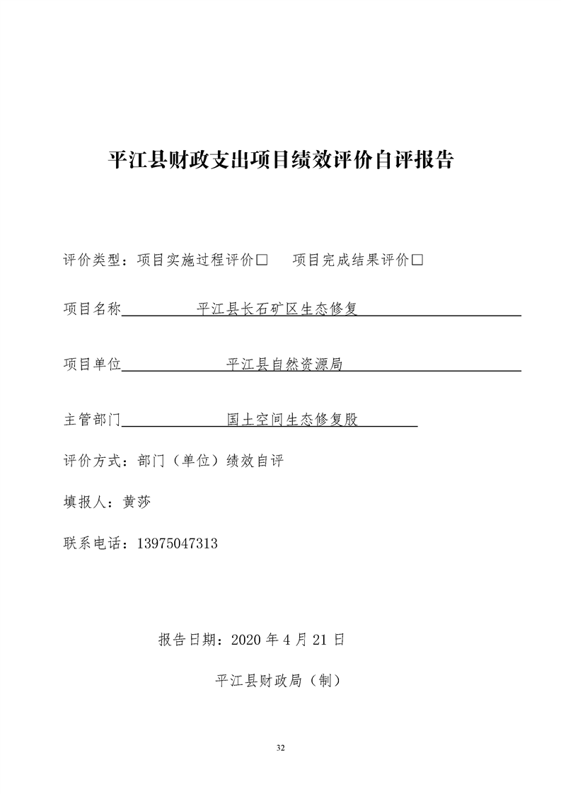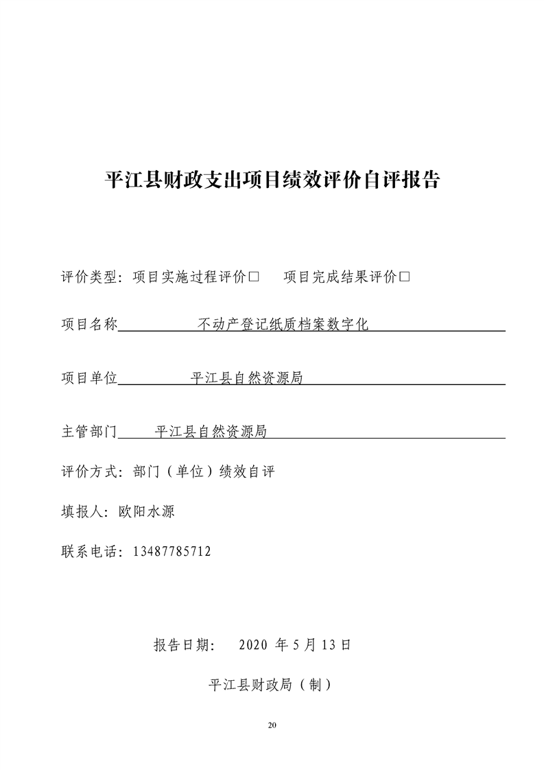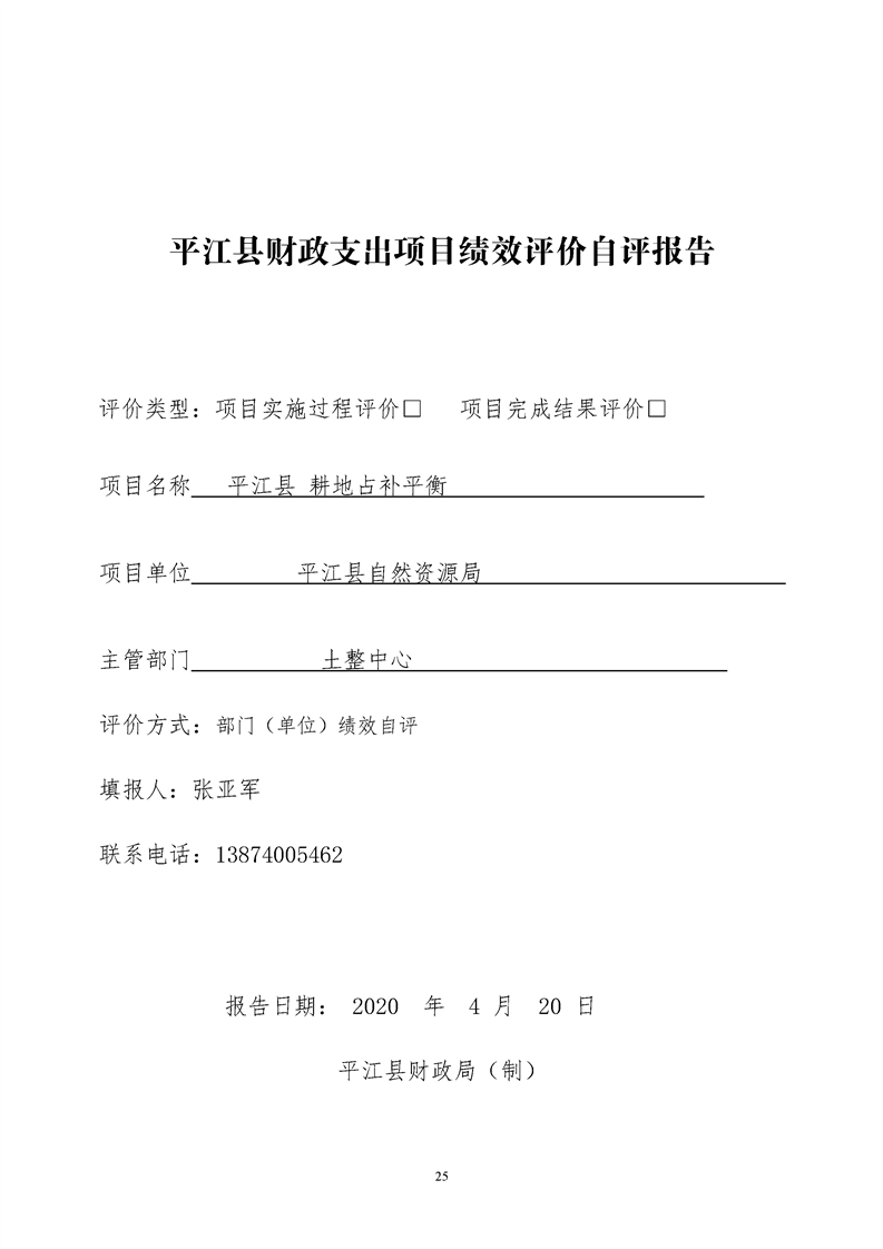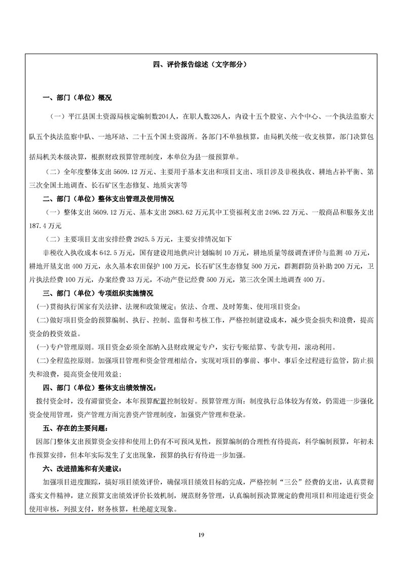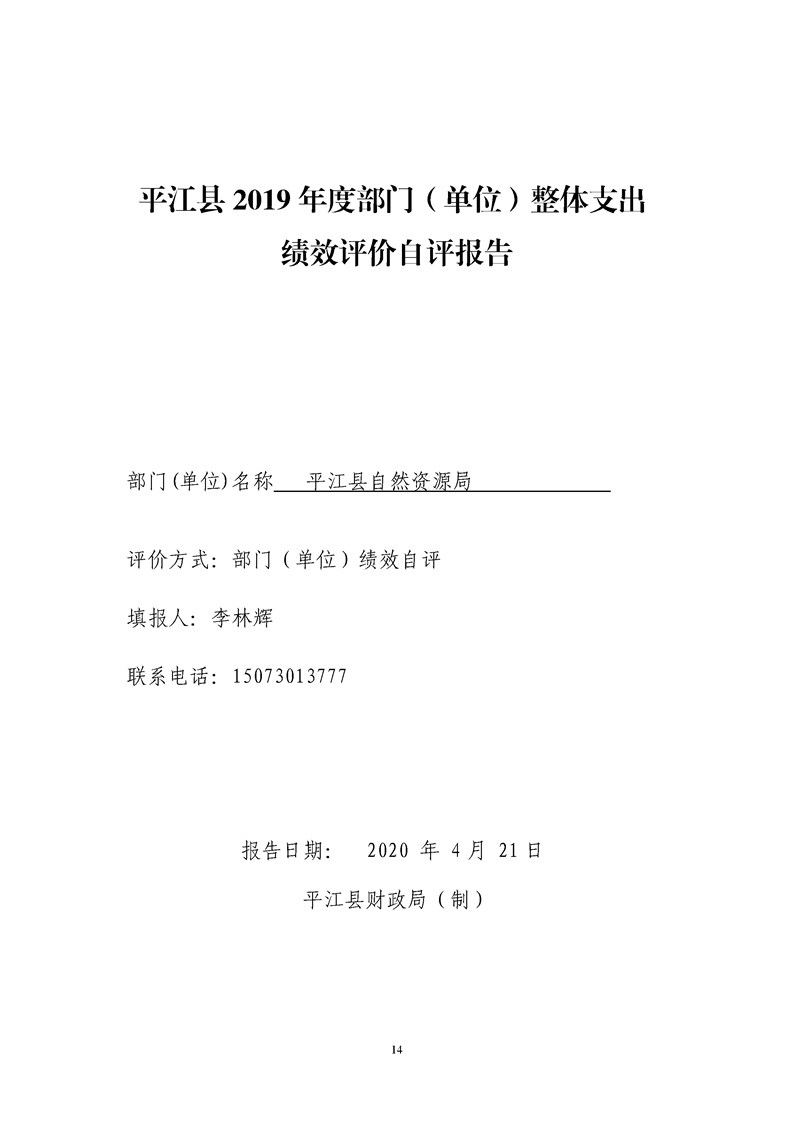 平江县自然资源局2019年支出绩效评价公示