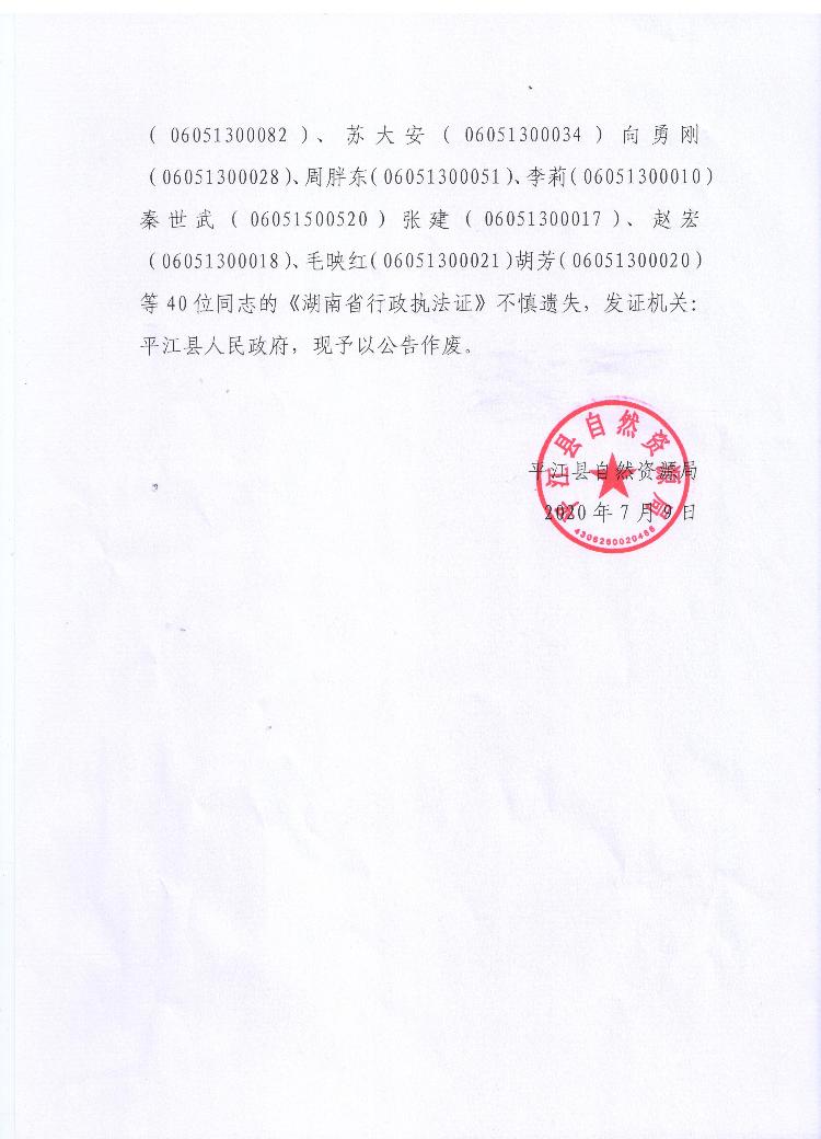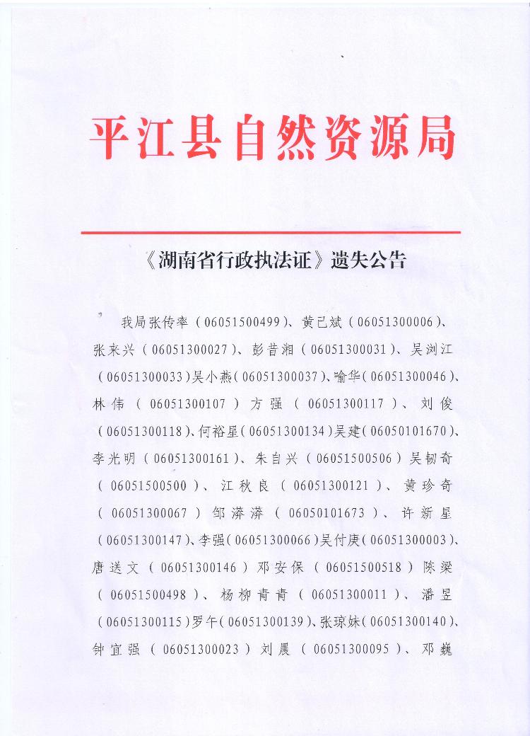 《湖南省行政执法证》遗失公告
