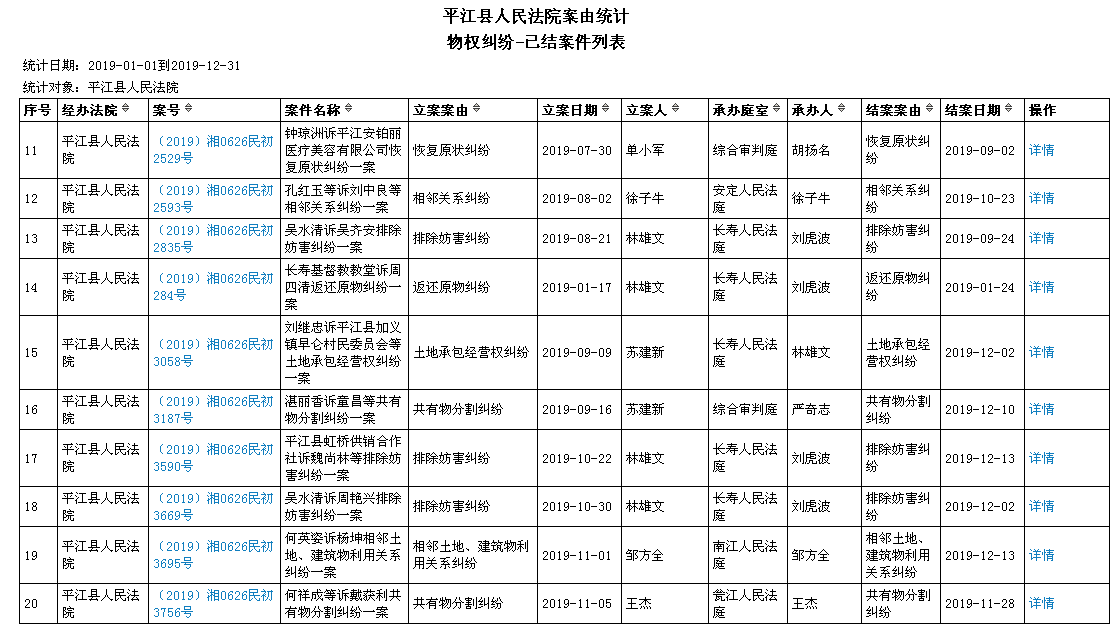 2019年物权纠纷案件列表