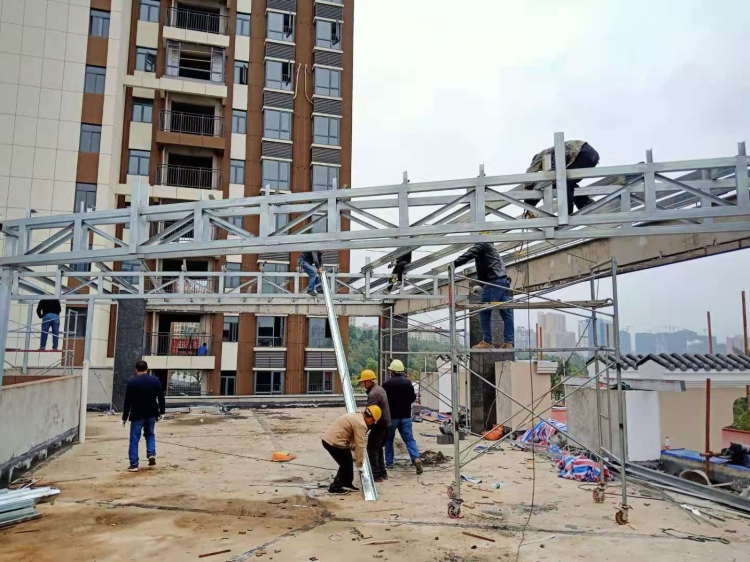 11月20日,平江县自然资源局执法监察大队联合天岳街道办事处、自然资源所、办事处应急大队对葛藤坪村天力城梦泽园售楼部顶违规搭建的钢架棚强制拆除,拆除面积480平方米。