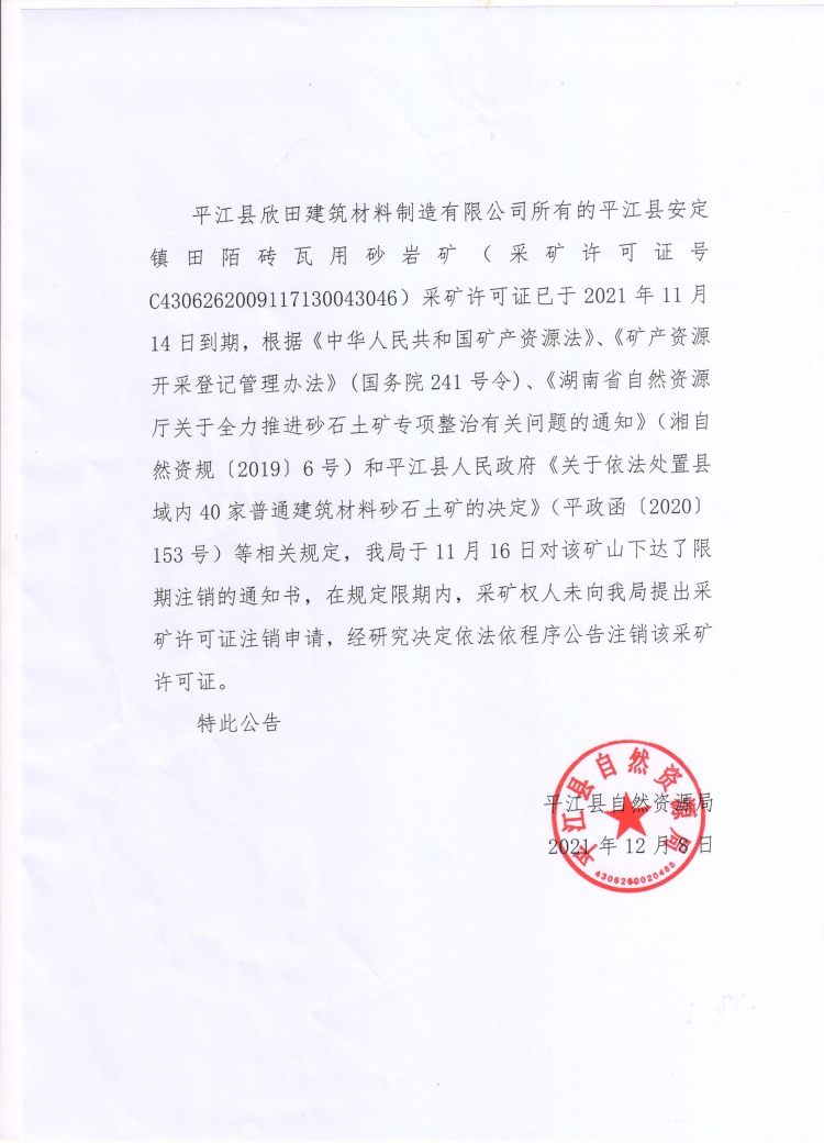 采矿权注销公告
