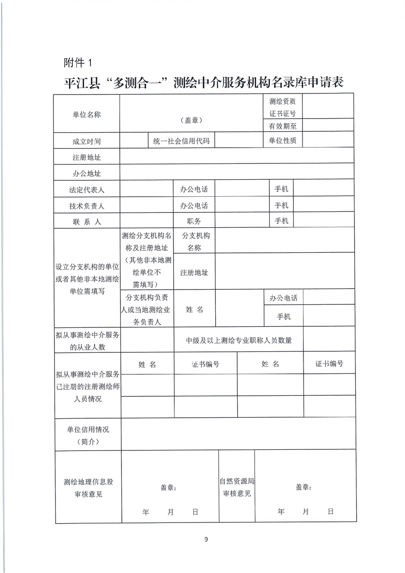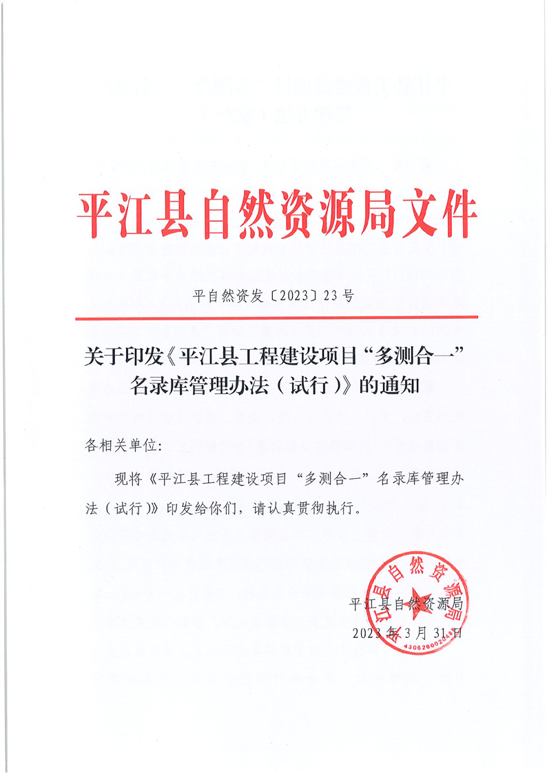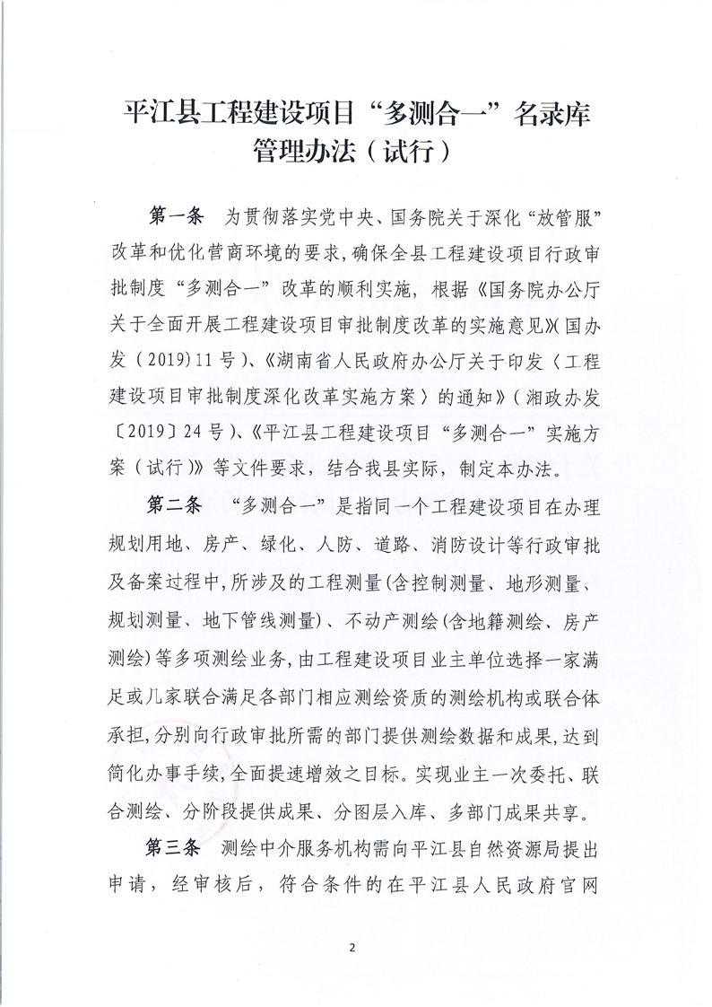 《平江县工程建设项目“多测合一”名录库管理办法(试行)》