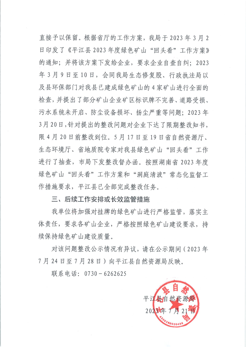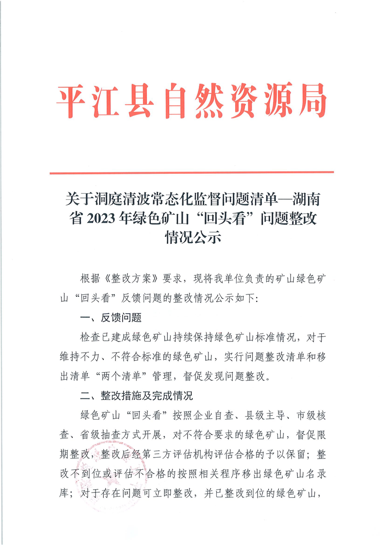 关于洞庭清波常态化监督问题清单—湖南省2023年绿色矿山“回头看”问题整改情况公示