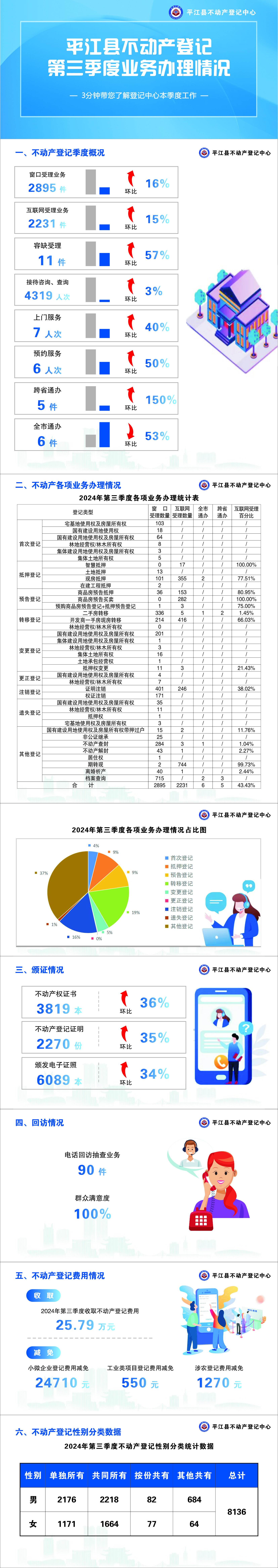 平江县不动产登记中心2024年第3季度办件基本情况