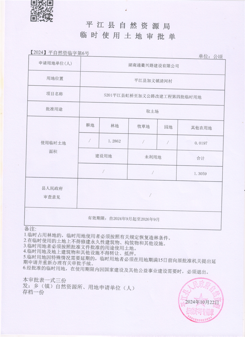 S201平江县虹桥至加义公路改建工程第四批临时用地