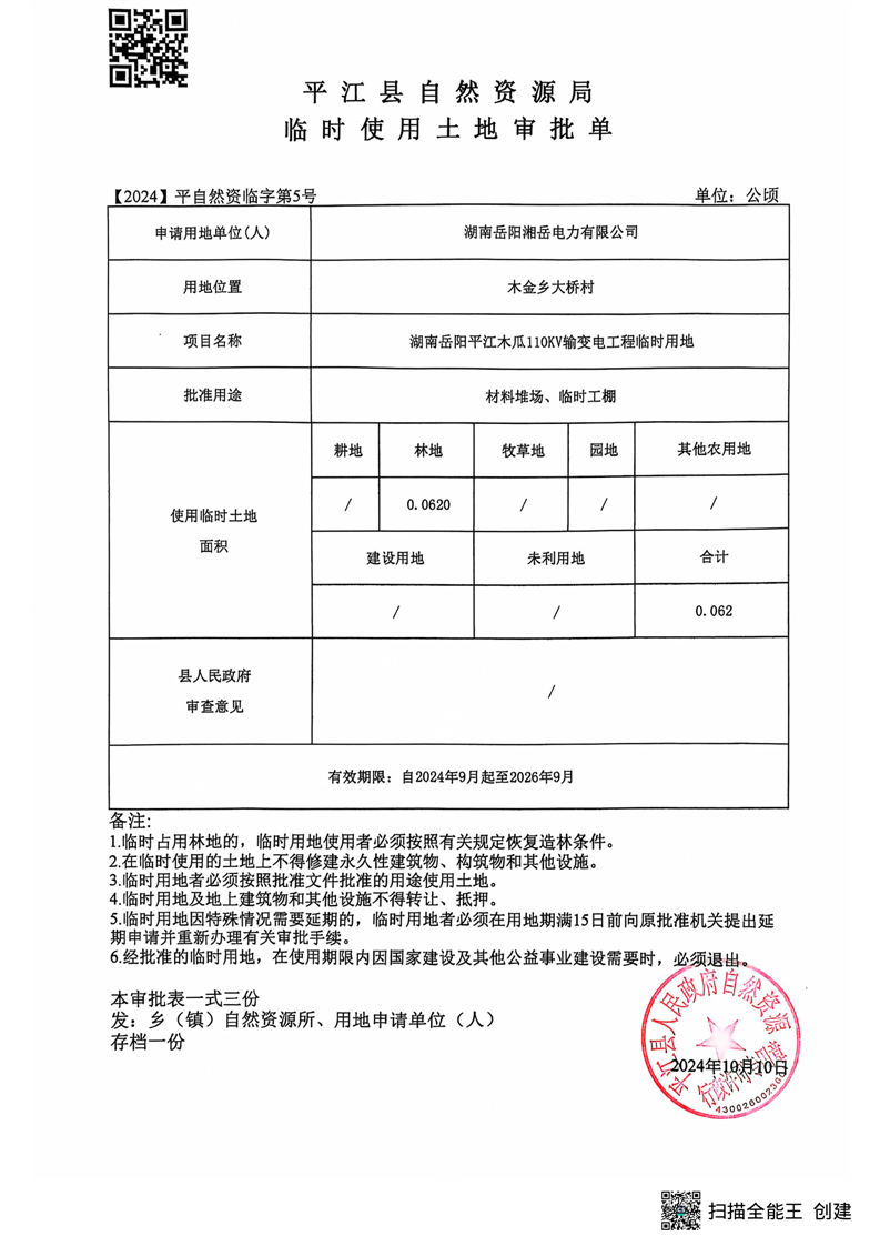 湖南岳阳平江木瓜110kv输变电工程临时用地
