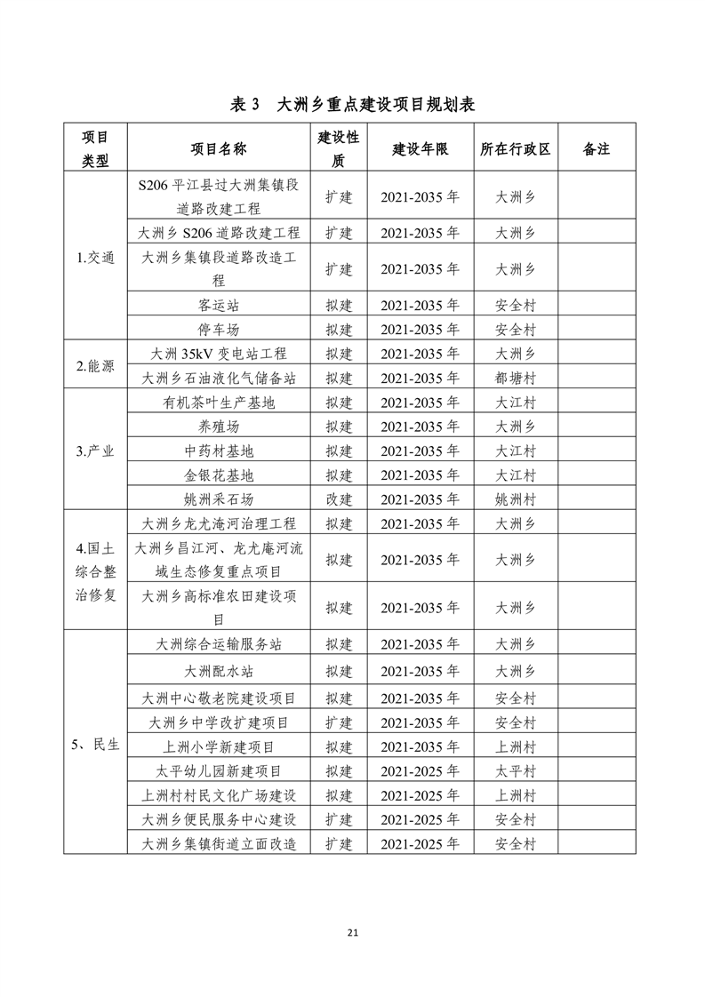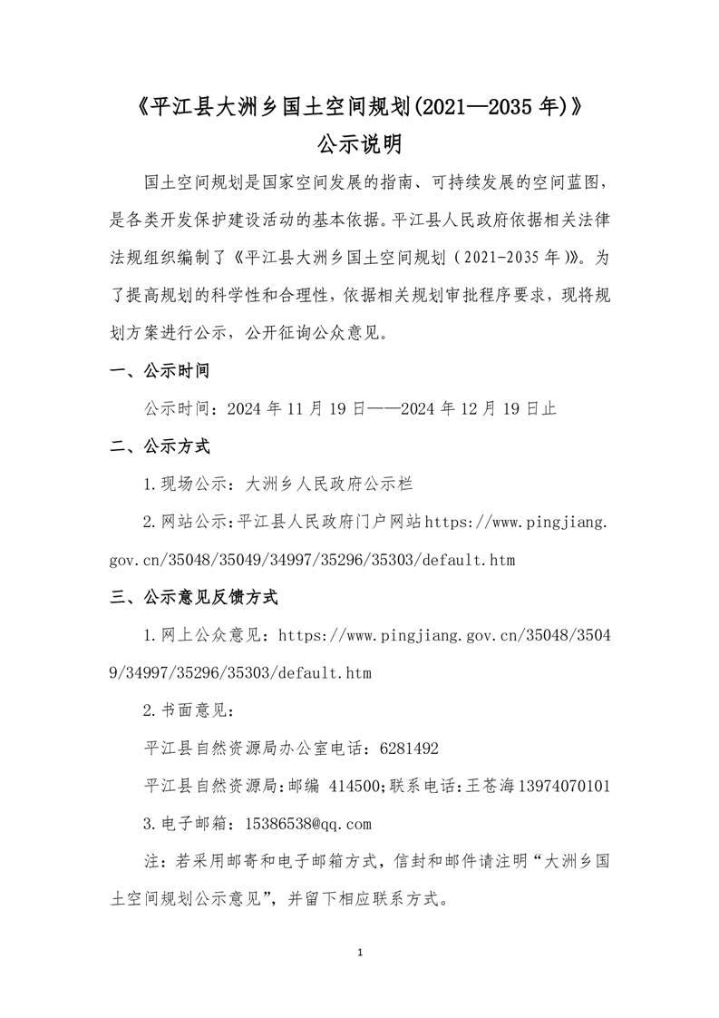 平江县大洲乡国土空间规划(2021-2035年)公示说明