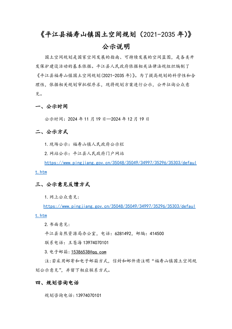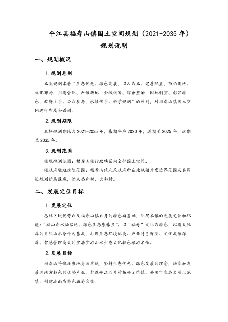 平江县福寿山镇国土空间规划(2021-2035年)公示说明