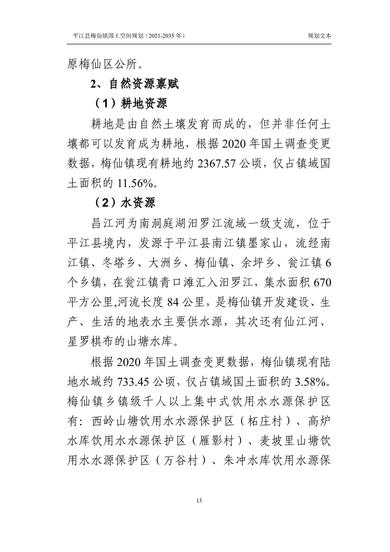平江县梅仙镇国土空间规划(2021-2035年)公示说明
