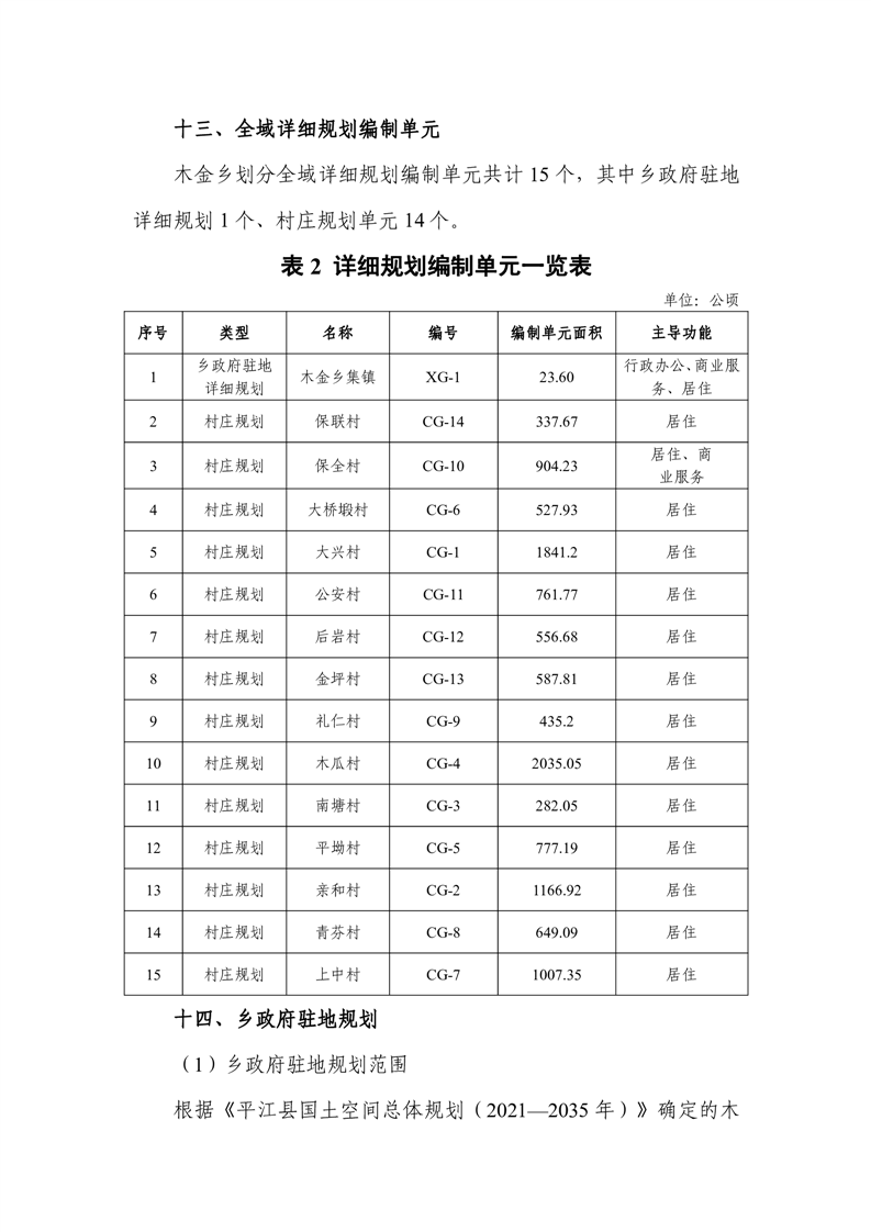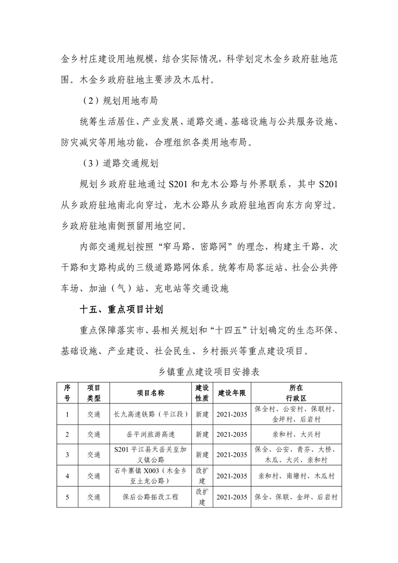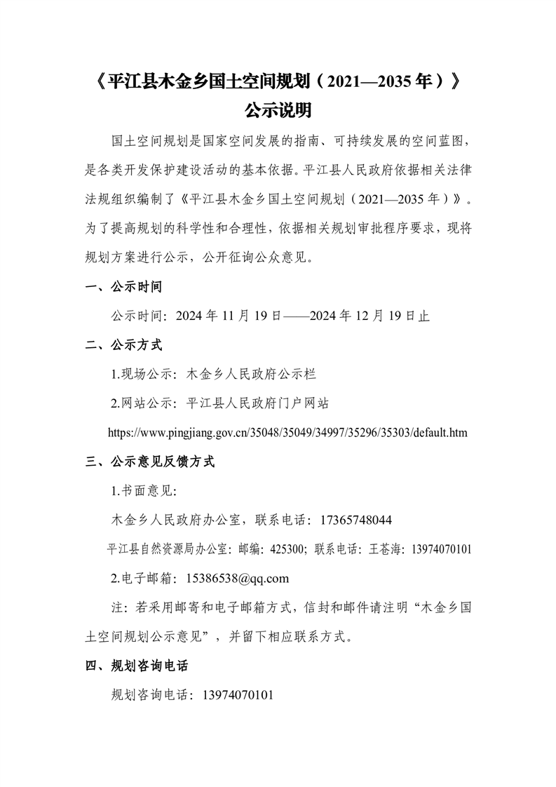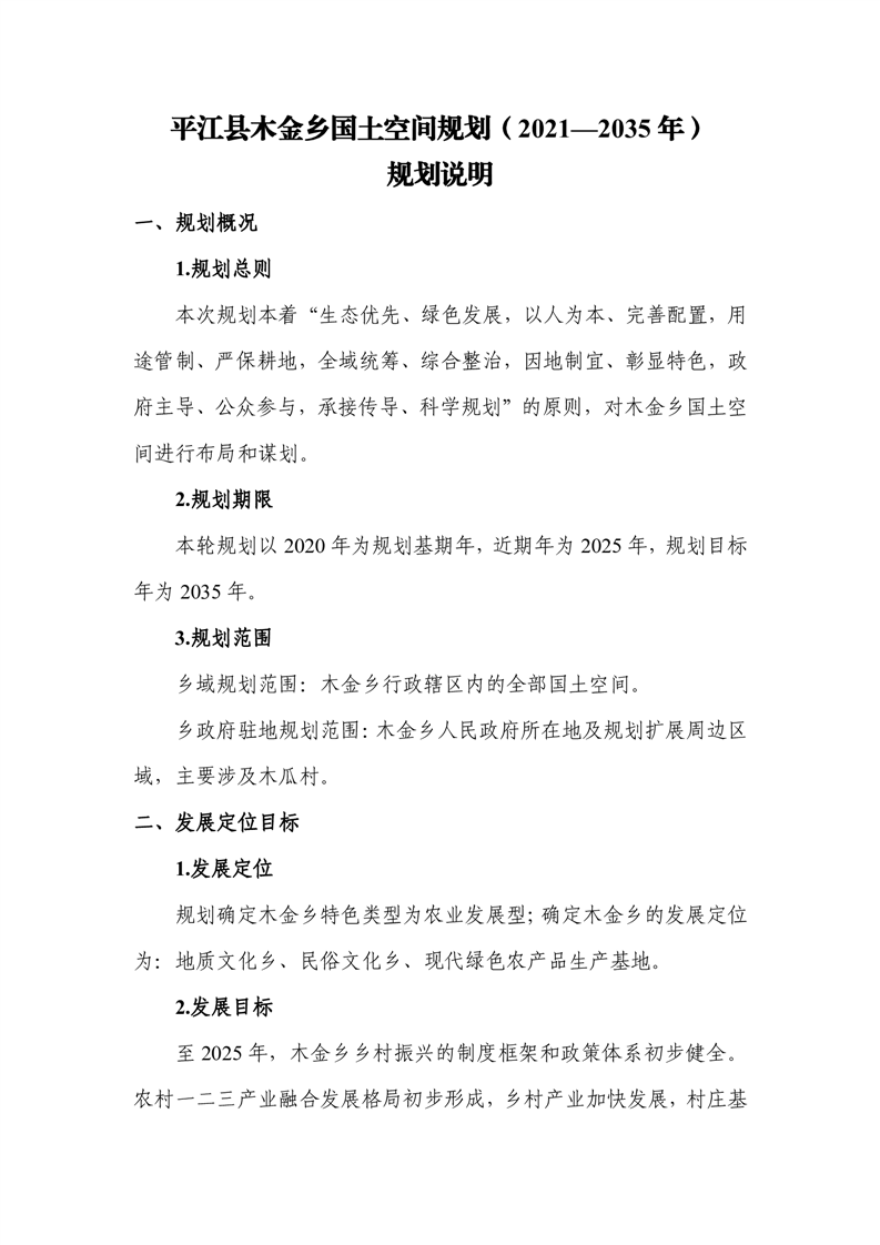 平江县木金乡国土空间规划(2021-2035年)公示说明