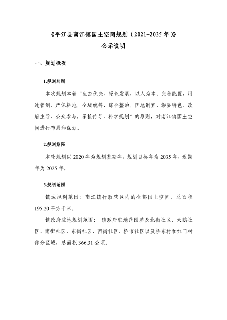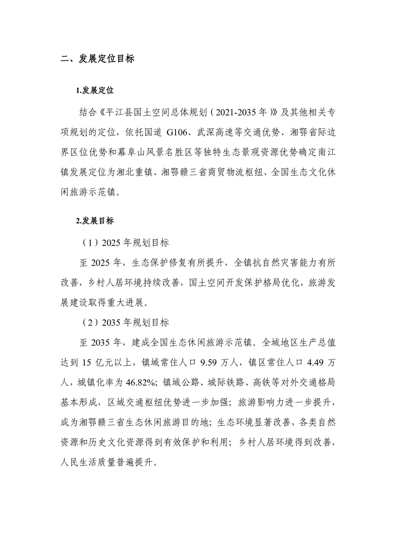 平江县南江镇国土空间规划(2021-2035年)公示说明