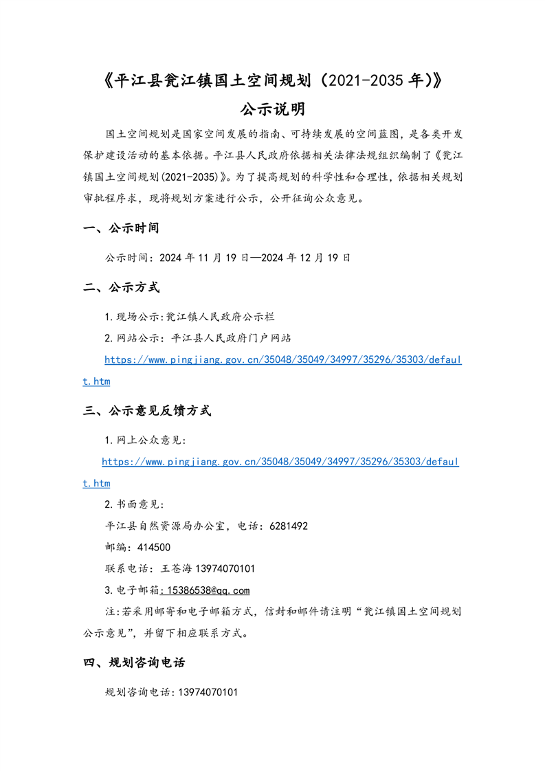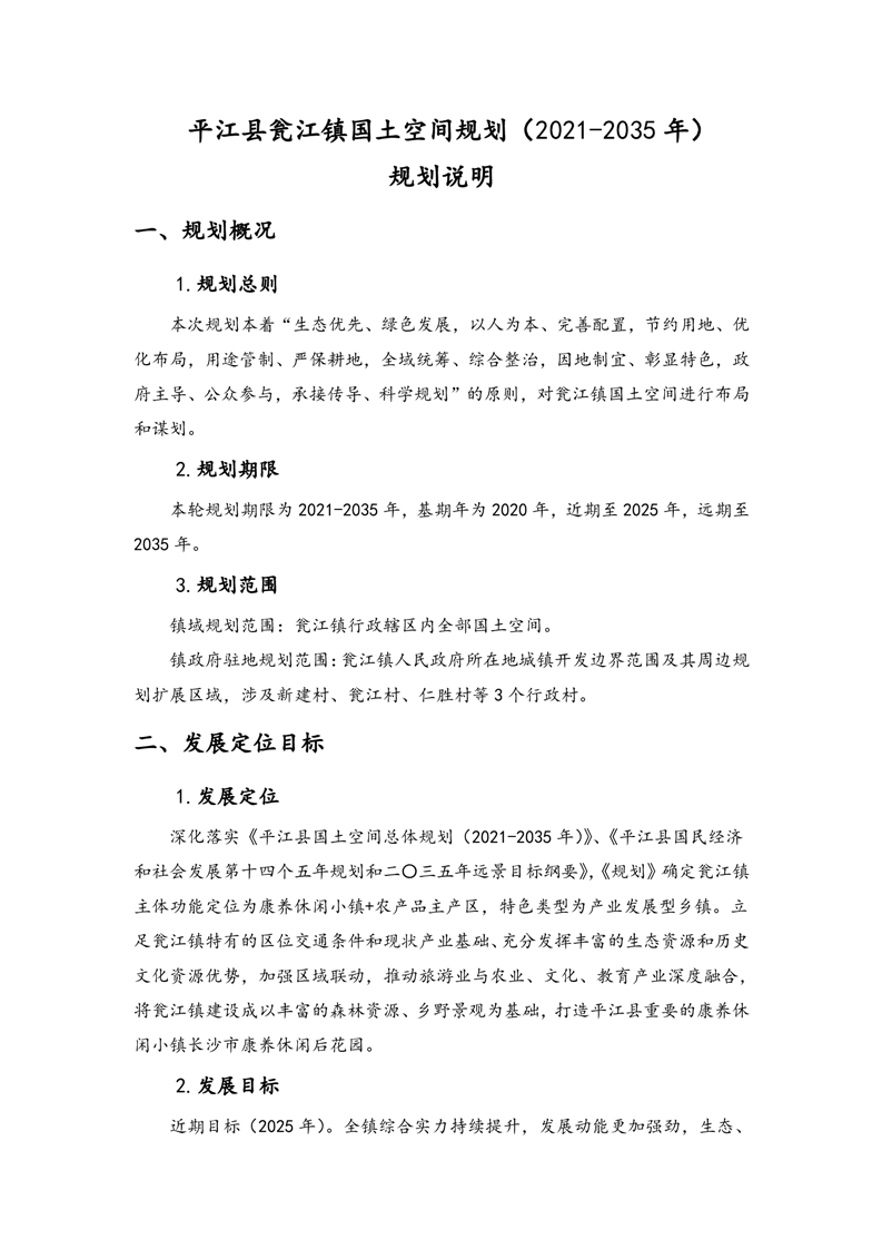 平江县瓮江镇国土空间规划(2021-2035年)公示说明