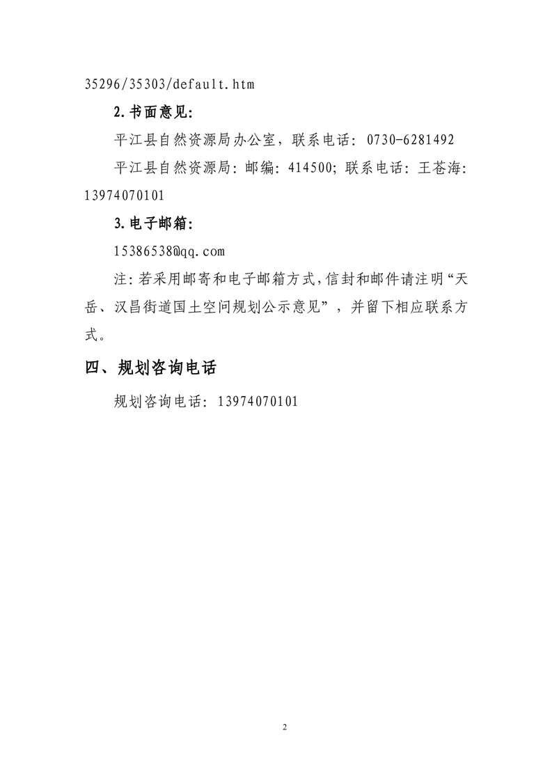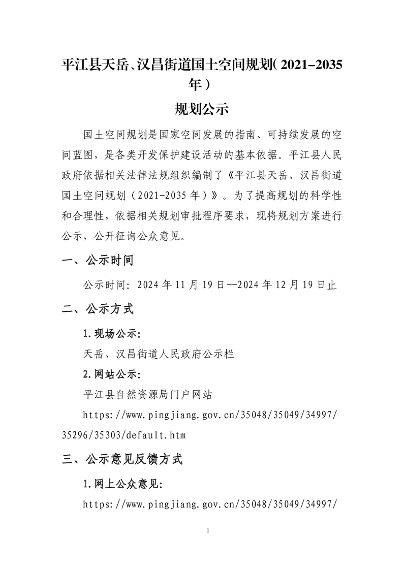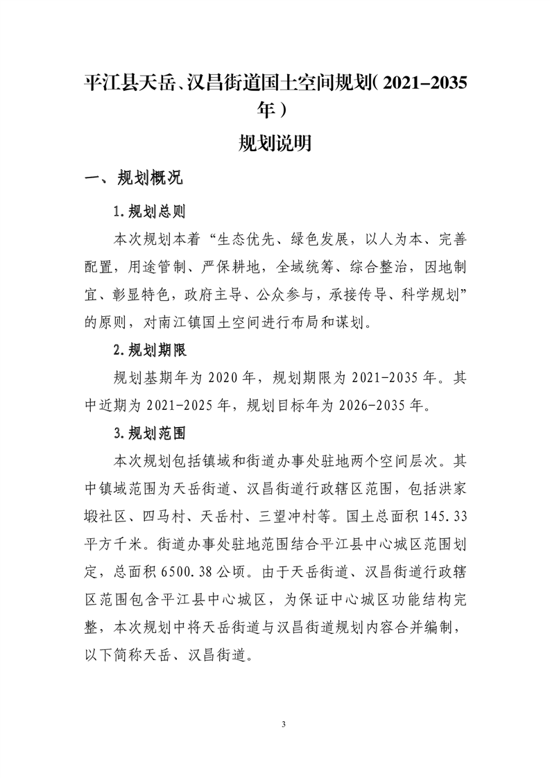 平江县天岳、汉昌街道国土空间规划(2021-2035年)公示说明