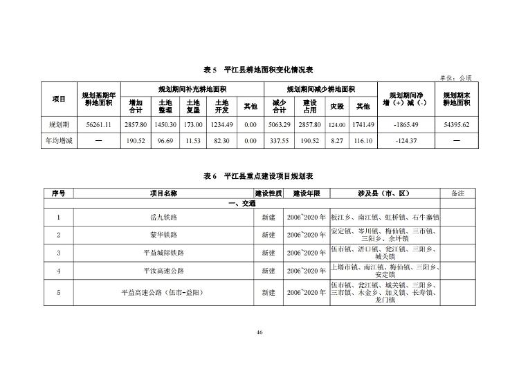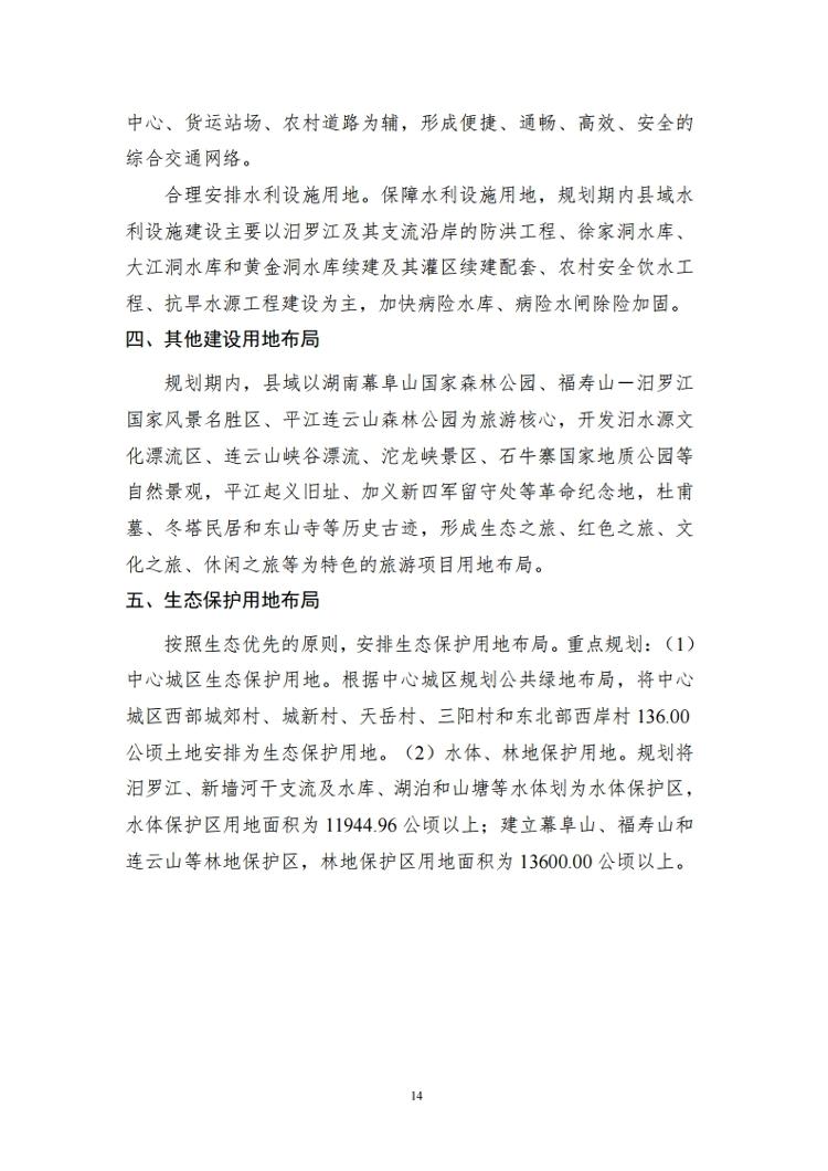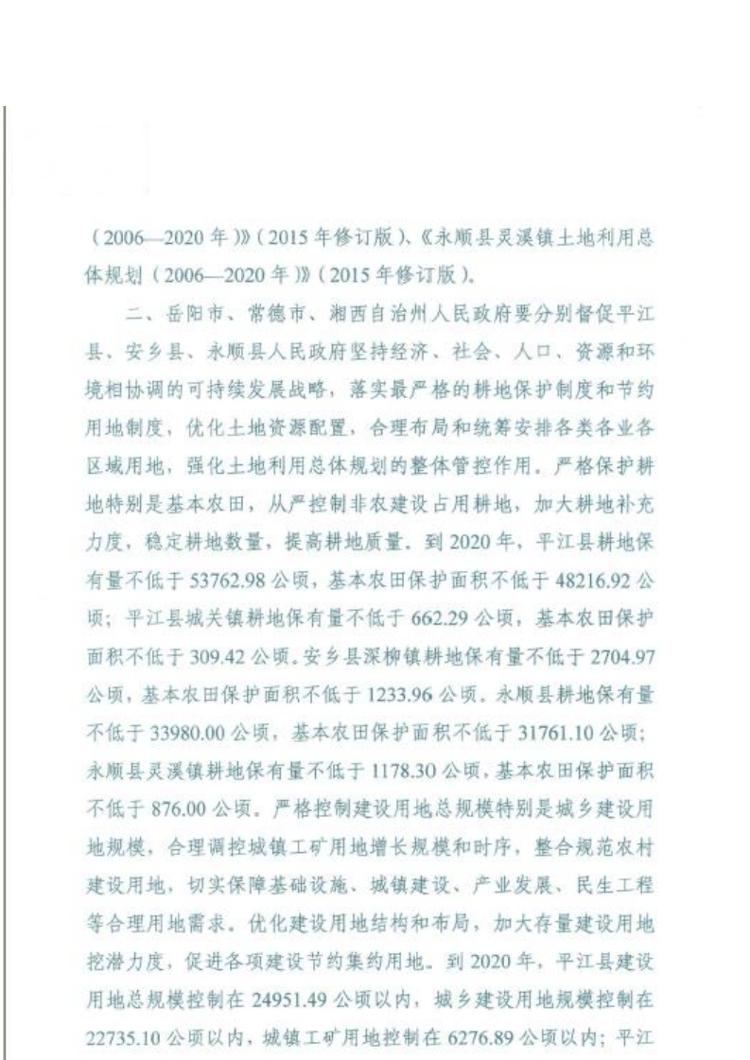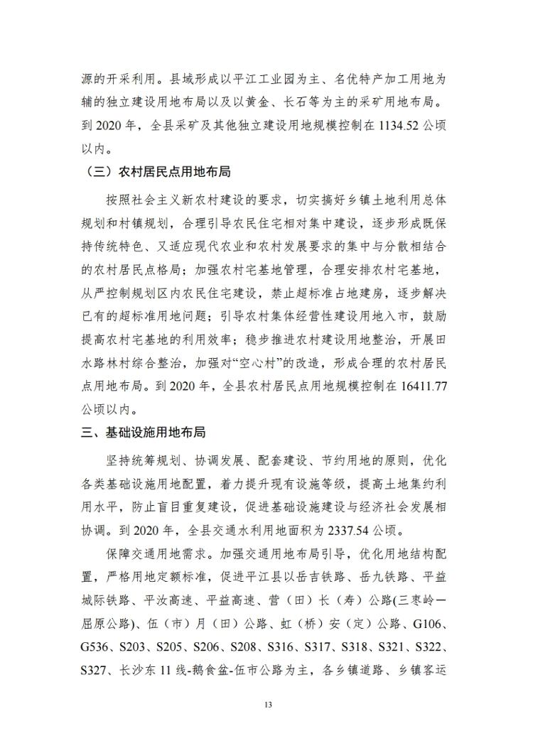 平江县土地利用总体规划(2006-2020年)(2017年调整完善方案)