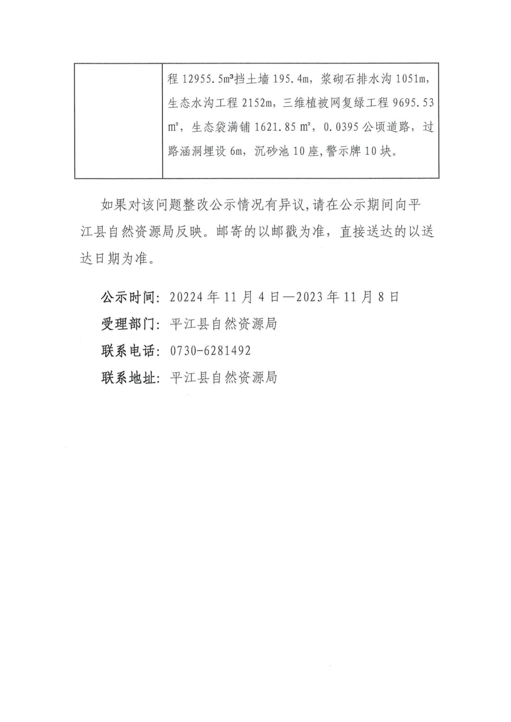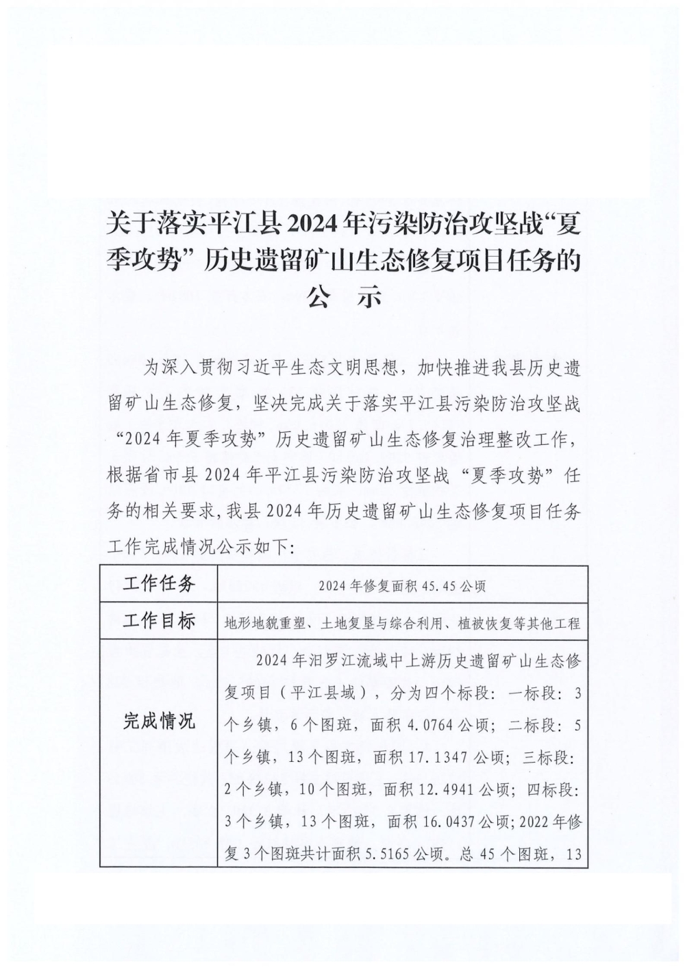 关于落实平江县2024年污染防治攻坚战“夏季攻势”历史遗留矿山生态修复项日任务的公示