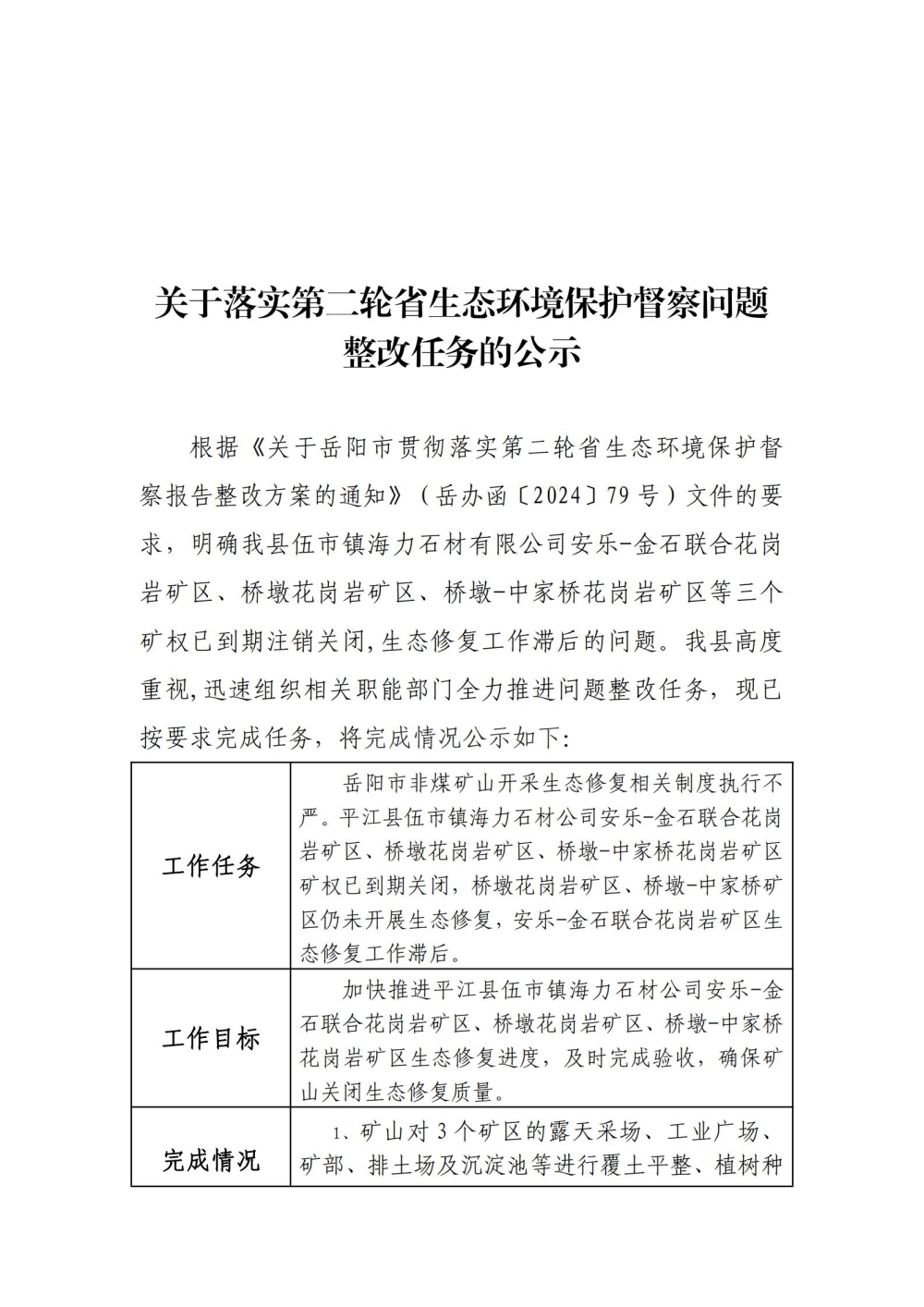 关于落实第二轮省生态环境保护督察问题整改任务的公示
