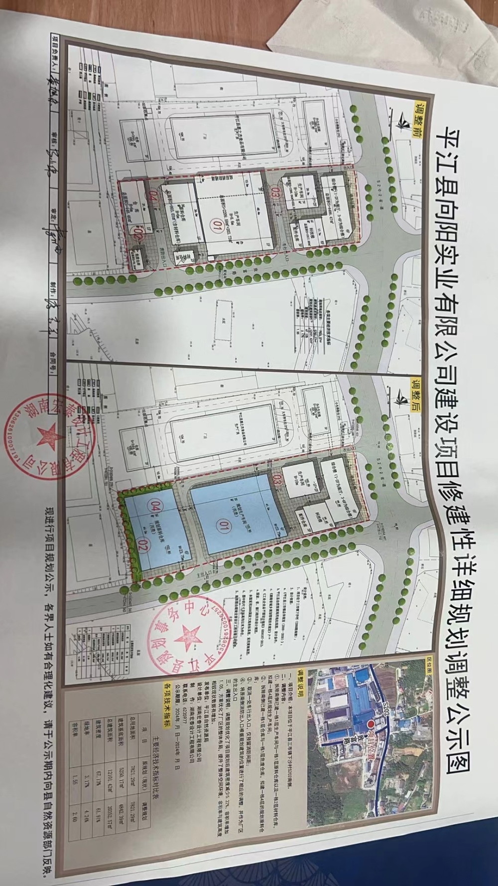 今有平江县向阳实业有限公司向我局提交审查《平江县向阳实业有限公司建设项目修建性详细规划公示》的申请。现根据《中华人民共和国行政许可法》和《中华人民共和国城乡规划法》的规定,对该项目规划依法予以公示。