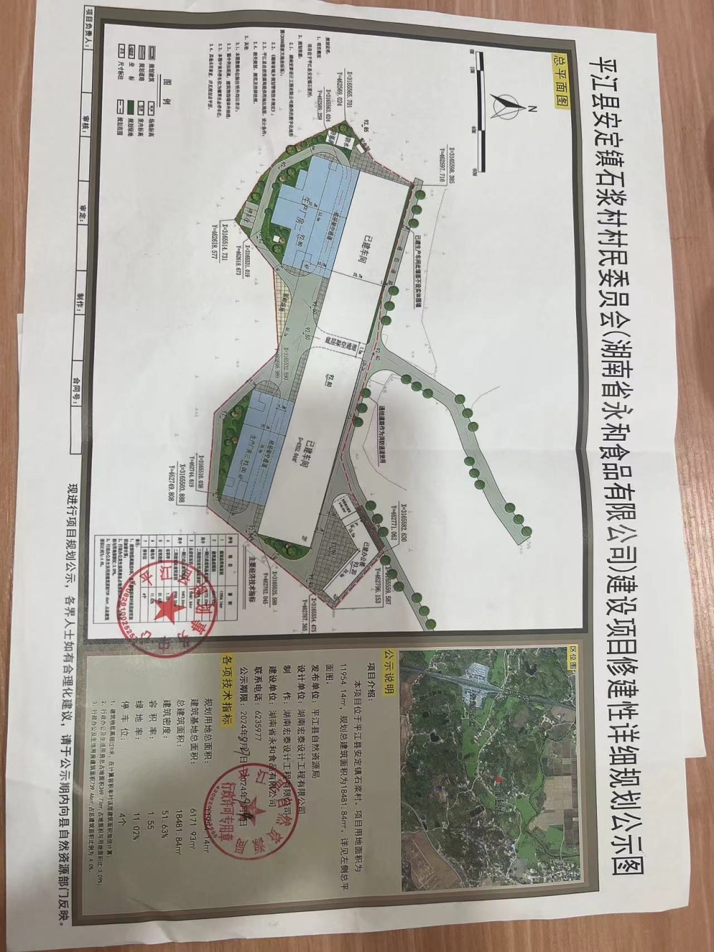 平江县安定镇石浆村村民委员会(湖南省永和食品有限公司)建设项目修建性详细规划公示行政许可公告