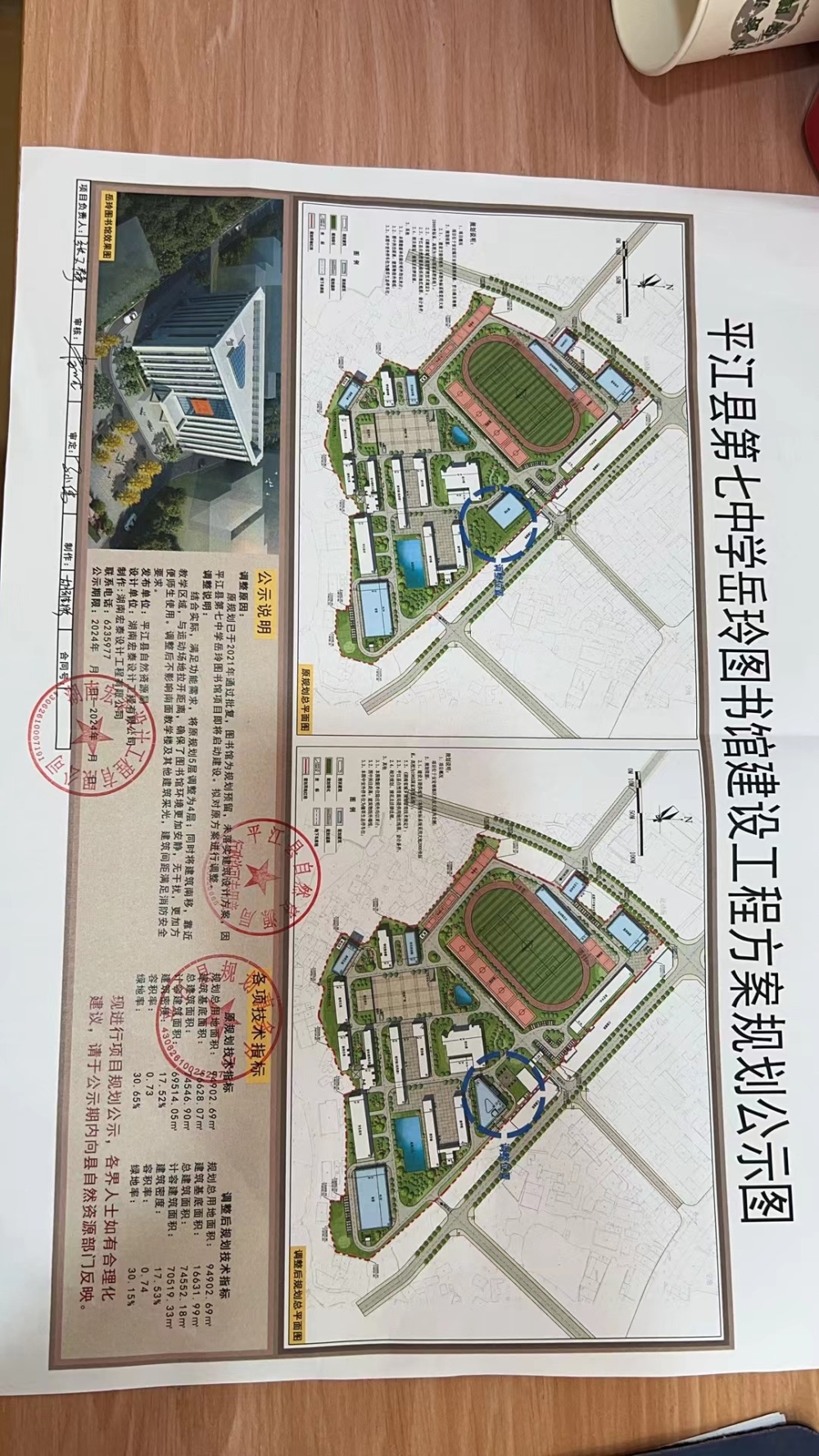 今有平江七中向我局提交审查《平江县第七中学岳玲图书馆建设工程方案修规划公示》的申请。现根据《中华人民共和国行政许可法》和《中华人民共和国城乡规划法》的规定,对该项目规划依法予以公示。