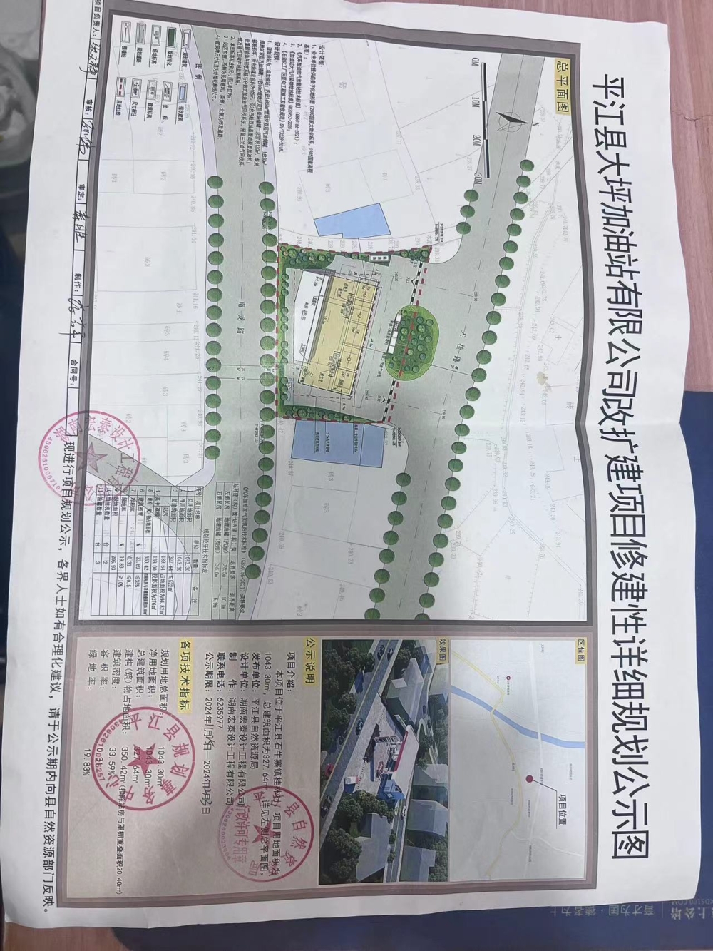 今有平江县大坪加油站有限公司向我局提交审查《平江县大坪加油站有限公司改扩建项目修建性详细规划公示》的申请。现根据《中华人民共和国行政许可法》和《中华人民共和国城乡规划法》的规定,对该项目规划依法予以公示。