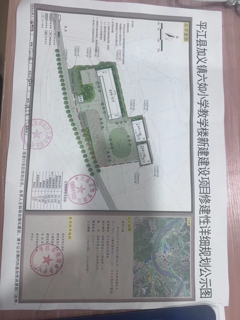 今有平江县加义镇人民政府向我局提交审查《平江县加义镇六如小学教学楼新建建设项目修建性详细规划公示》的申请。现根据《中华人民共和国行政许可法》和《中华人民共和国城乡规划法》的规定,对该项目规划依法予以公示。