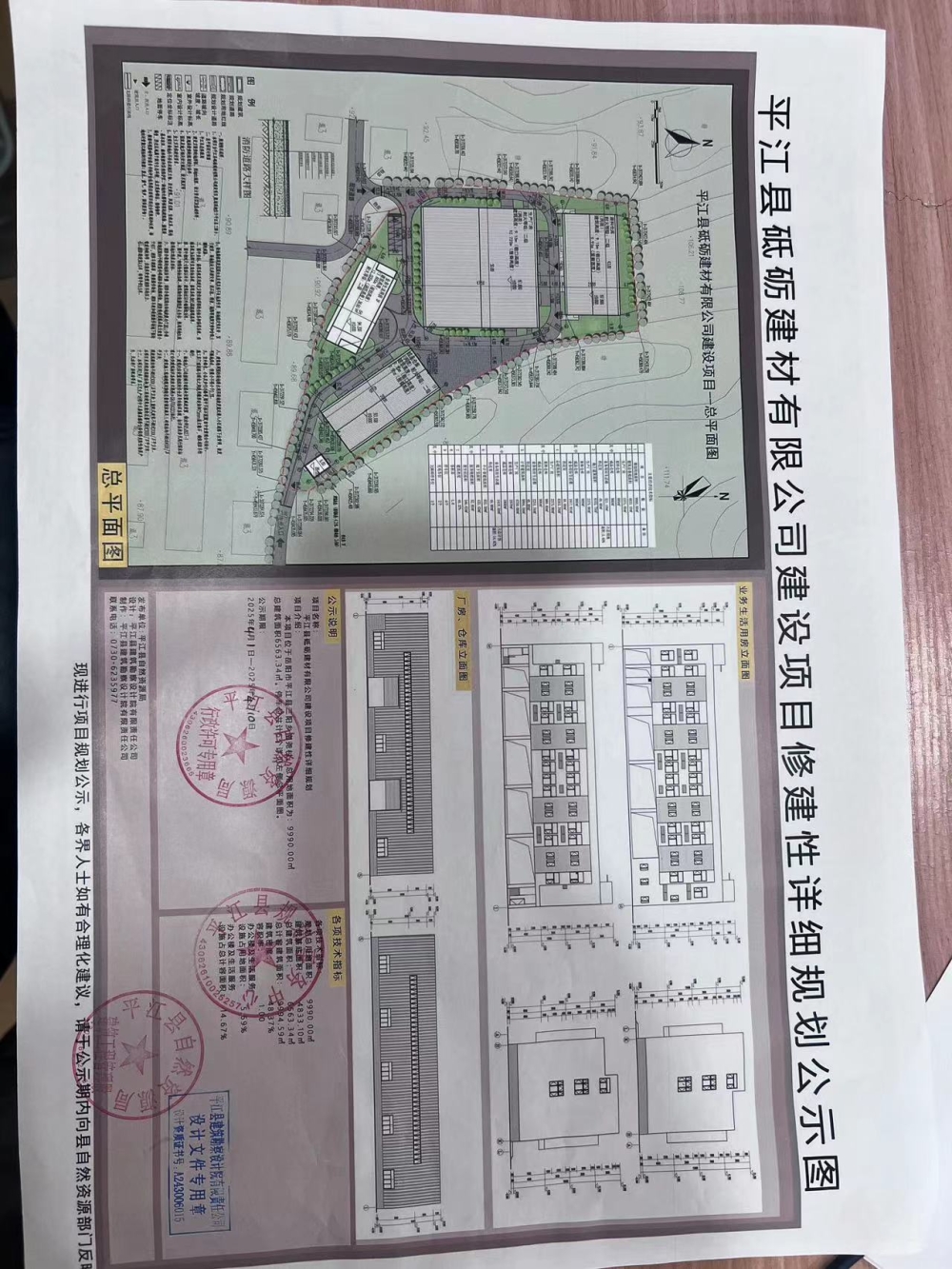今有平江县砥砺建材有限公司向我局提交审查《平江县砥砺建材有限公司建设项目修建性详细规划公示》的申请。现根据《中华人民共和国行政许可法》和《中华人民共和国城乡规划法》的规定,对该项目规划依法予以公示。