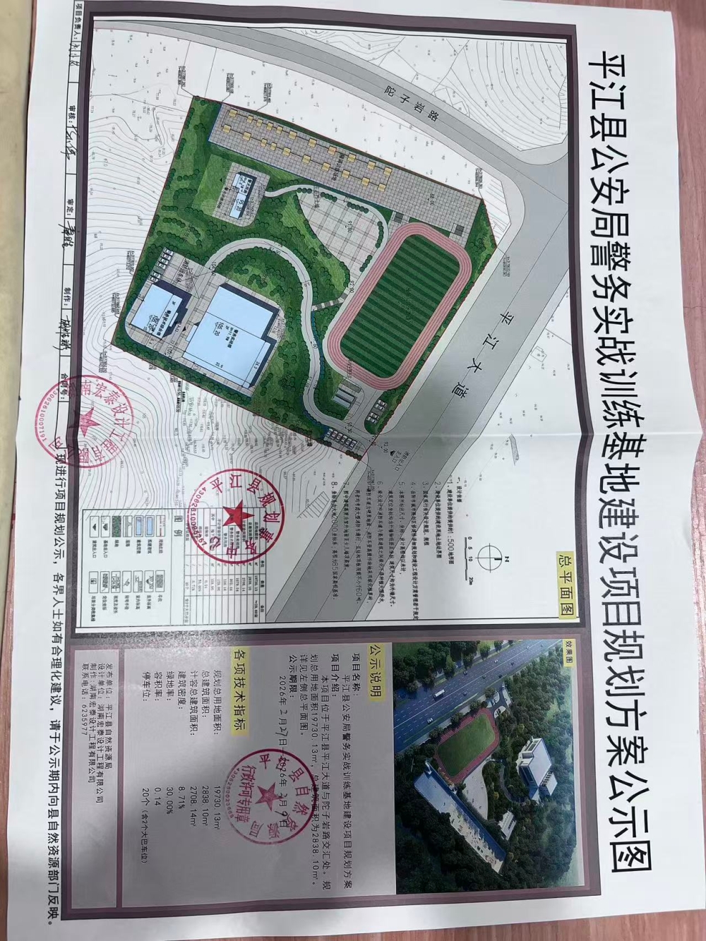 今有平江县公安局向我局提交审查《平江县公安局警务实战训练基地建设项目规划方案公示》的申请。现根据《中华人民共和国行政许可法》和《中华人民共和国城乡规划法》的规定,对该项目规划依法予以公示。