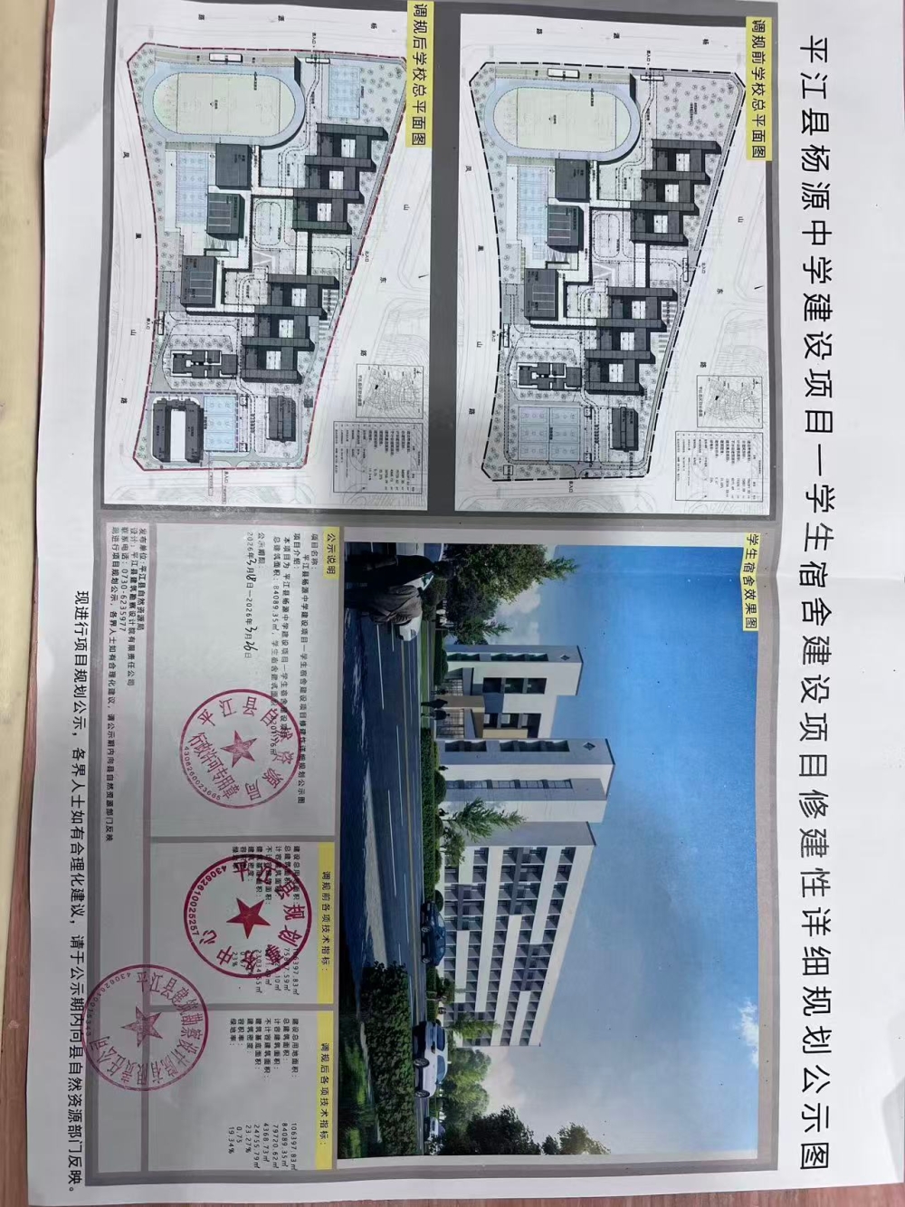 今有平江县杨源中学向我局提交审查《平江县杨源中学建设项目-学生宿舍建设项目修建性详细规划公示》的申请。现根据《中华人民共和国行政许可法》和《中华人民共和国城乡规划法》的规定,对该项目规划依法予以公示。