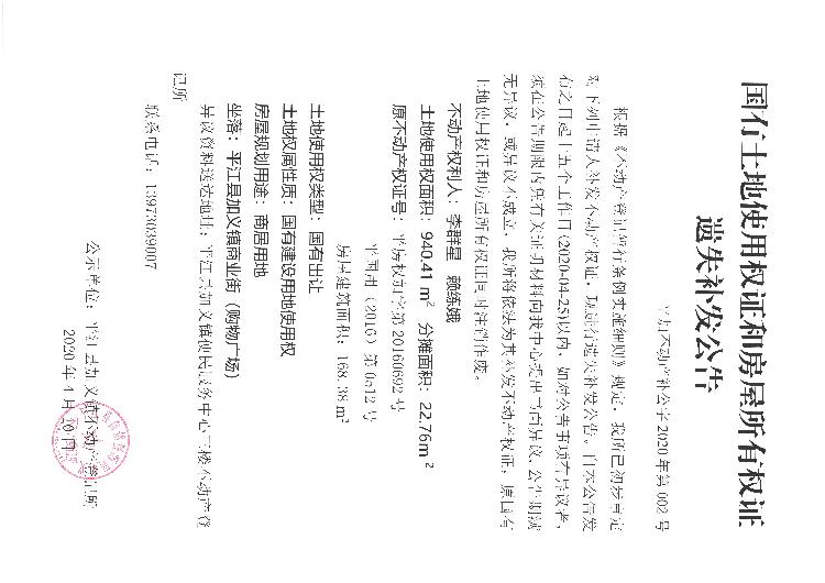 不动产登记公告