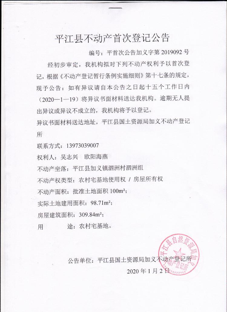 吴志兴 欧阳海燕不动产首次公示.jpg