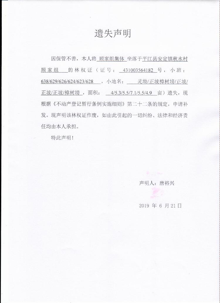 顾家组集体林权证遗失声明2