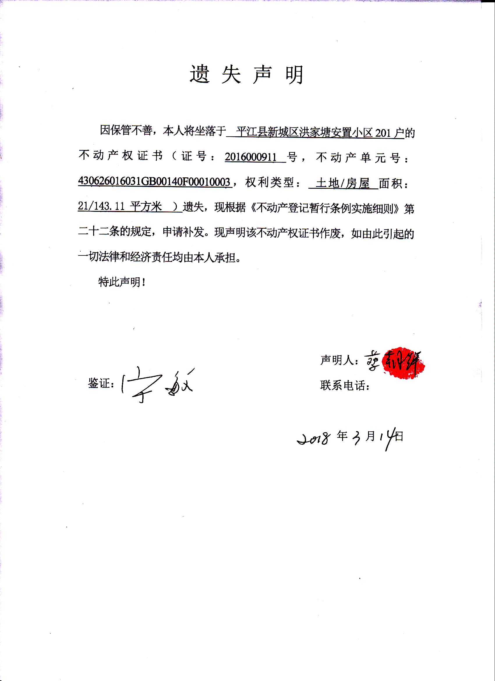 蔡朝辉不动产权证书遗失声明