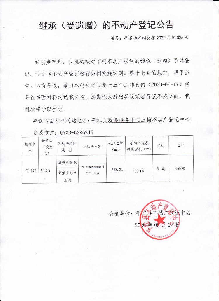 李立元继承(受遗赠)的不动产登记公告.jpg
