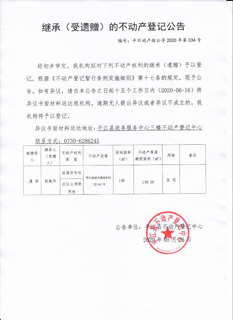 彭就华继承(受遗赠)的不动产登记公告.jpg