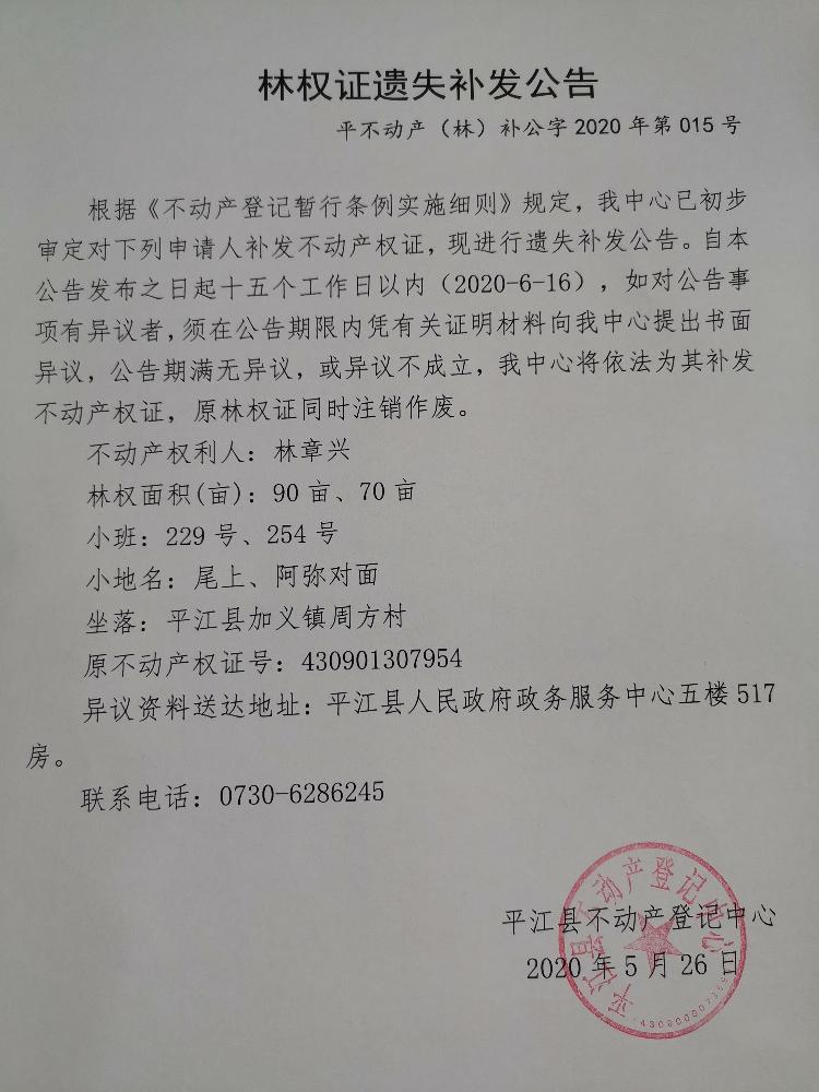 林章兴林权证遗失补发公告