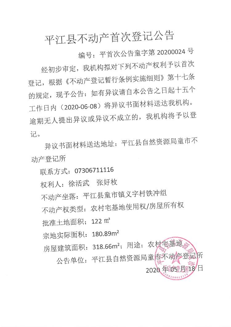 徐活武 张好枚 不动产首次登记公告