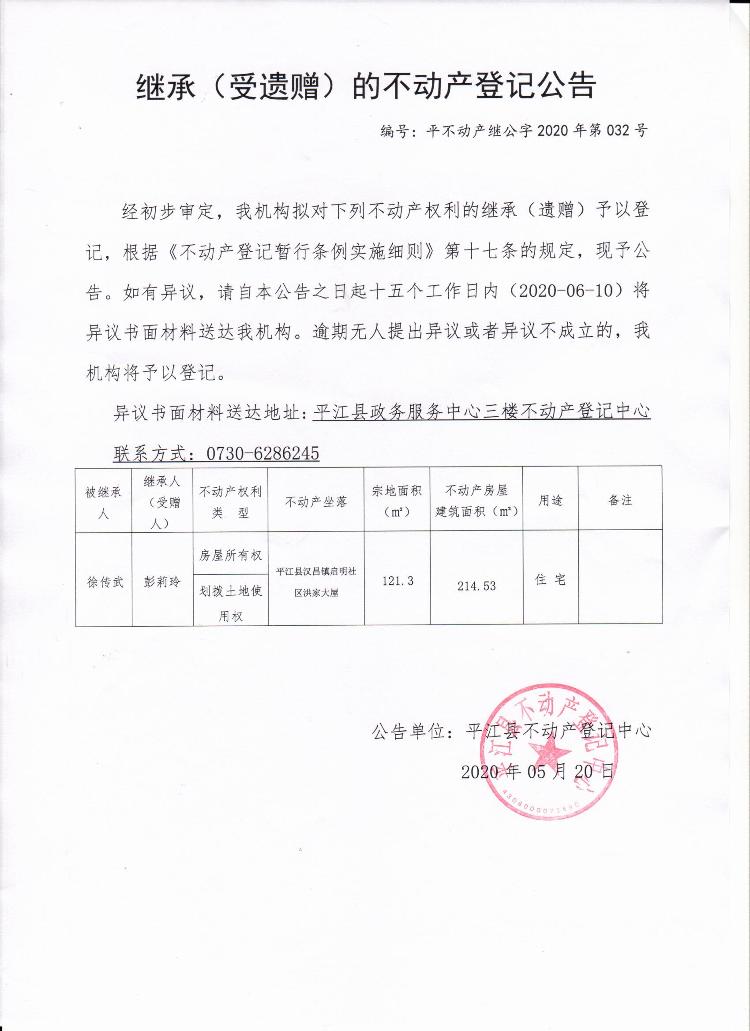 彭莉玲继承(受遗赠)的不动产登记公告.jpg