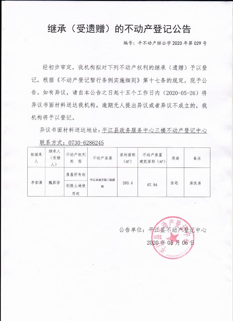 魏彩芬继承(受遗赠)的不动产登记公告.jpg